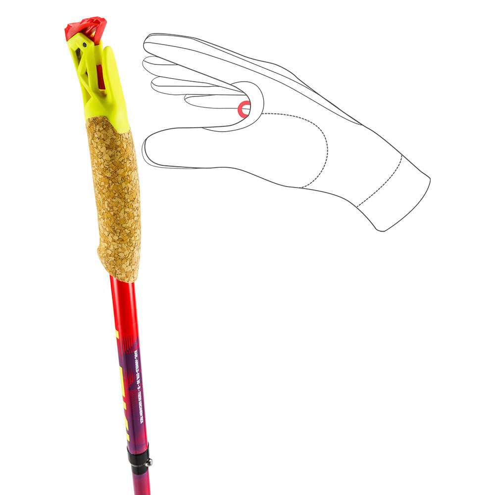 - Extensión de la empuñadura: ampliación de la zona de empuñadura para un ajuste sencillo del agarre en terrenos empinados o en travesías.
