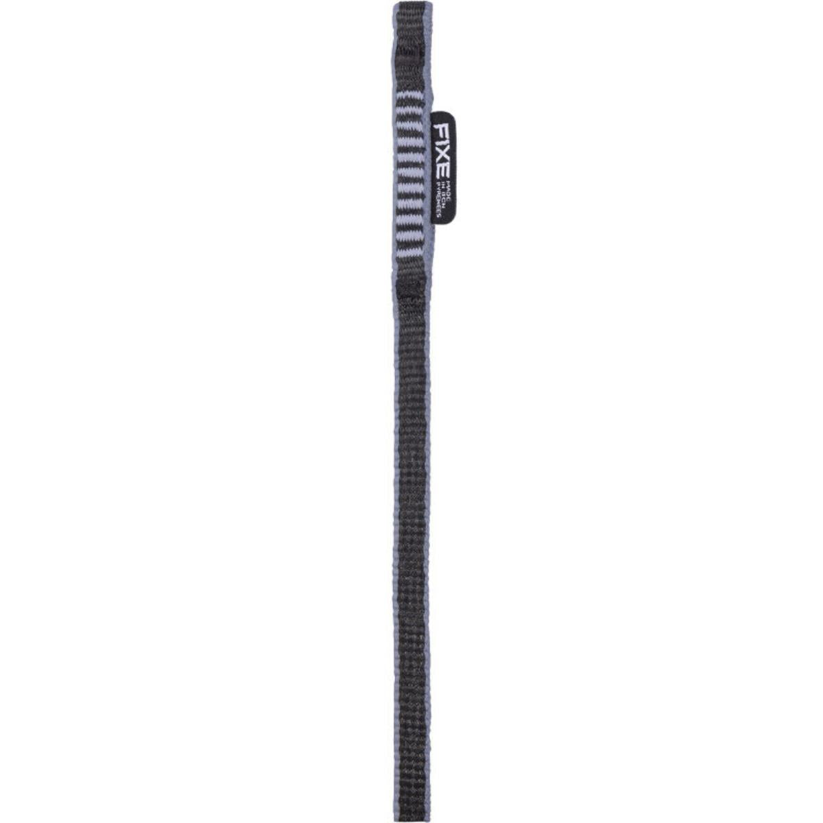 Anilla cosida de cinta. Las costuras de la anilla, tanto en las puntas como en los laterales, están rematadas para evitar que se enganchen al realizar maniobras en las reuniones, con mosquetones, etc. El logotipo distintivo de Fixe se cose en el lateral de la anilla para evitar roces en las maniobras también y además los cantos de la etiqueta están redondeados.