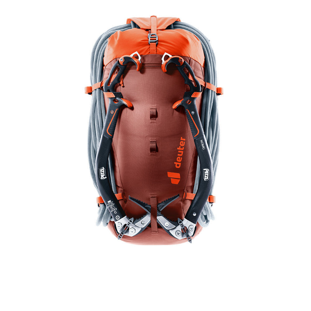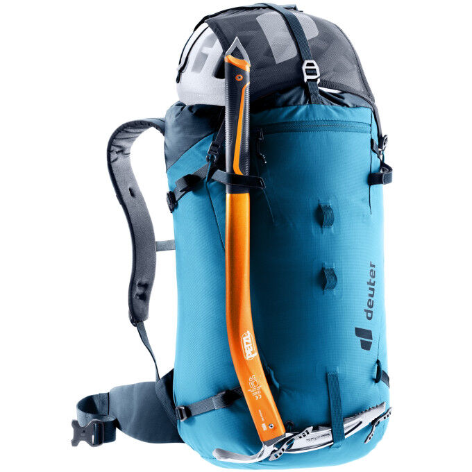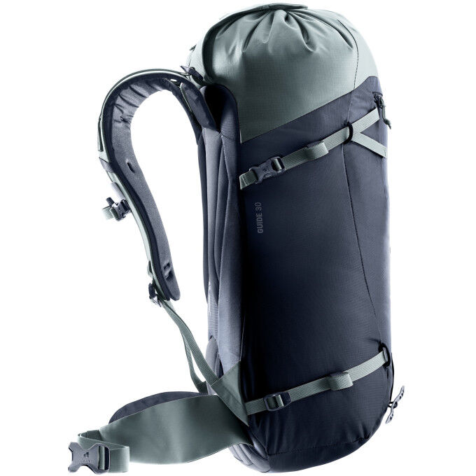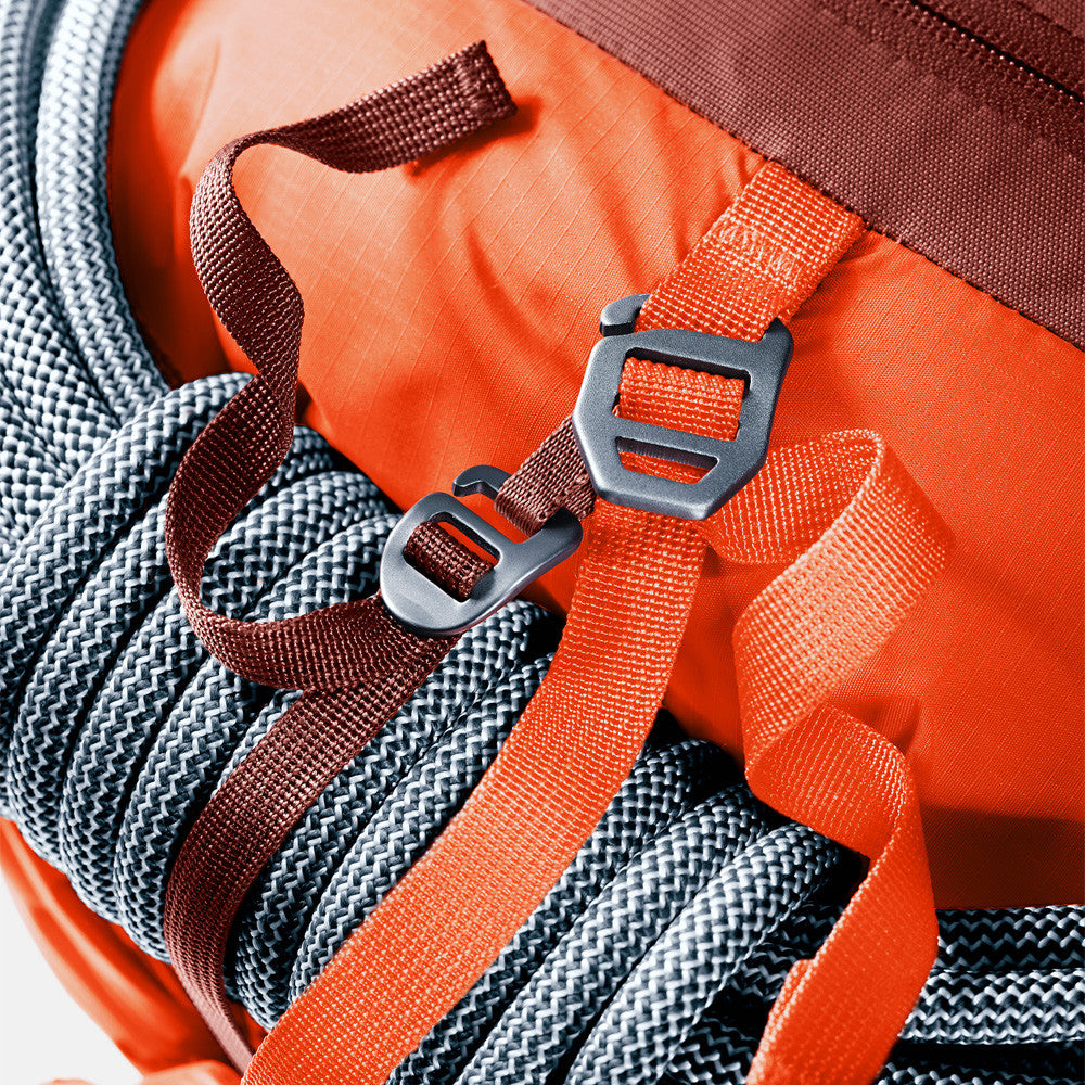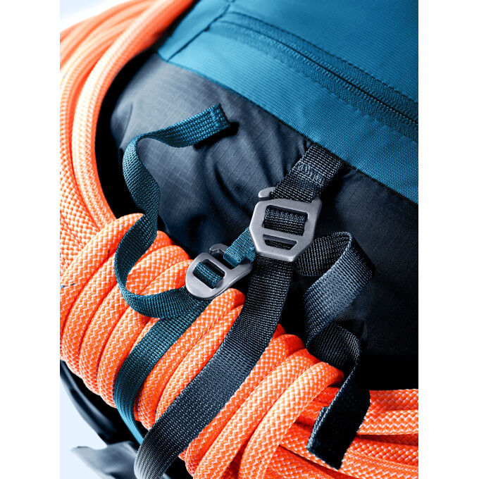 Además, la mochila Deuter Guide 30 está equipada con correas de compresión laterales que te permiten estabilizar tu carga y fijar equipo adicional como piolets o bastones de trekking.