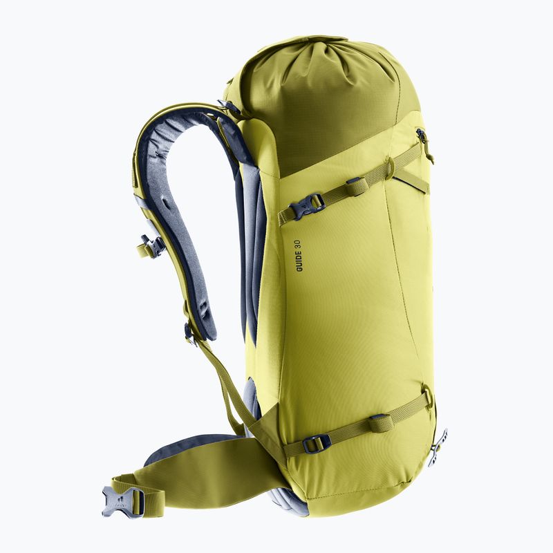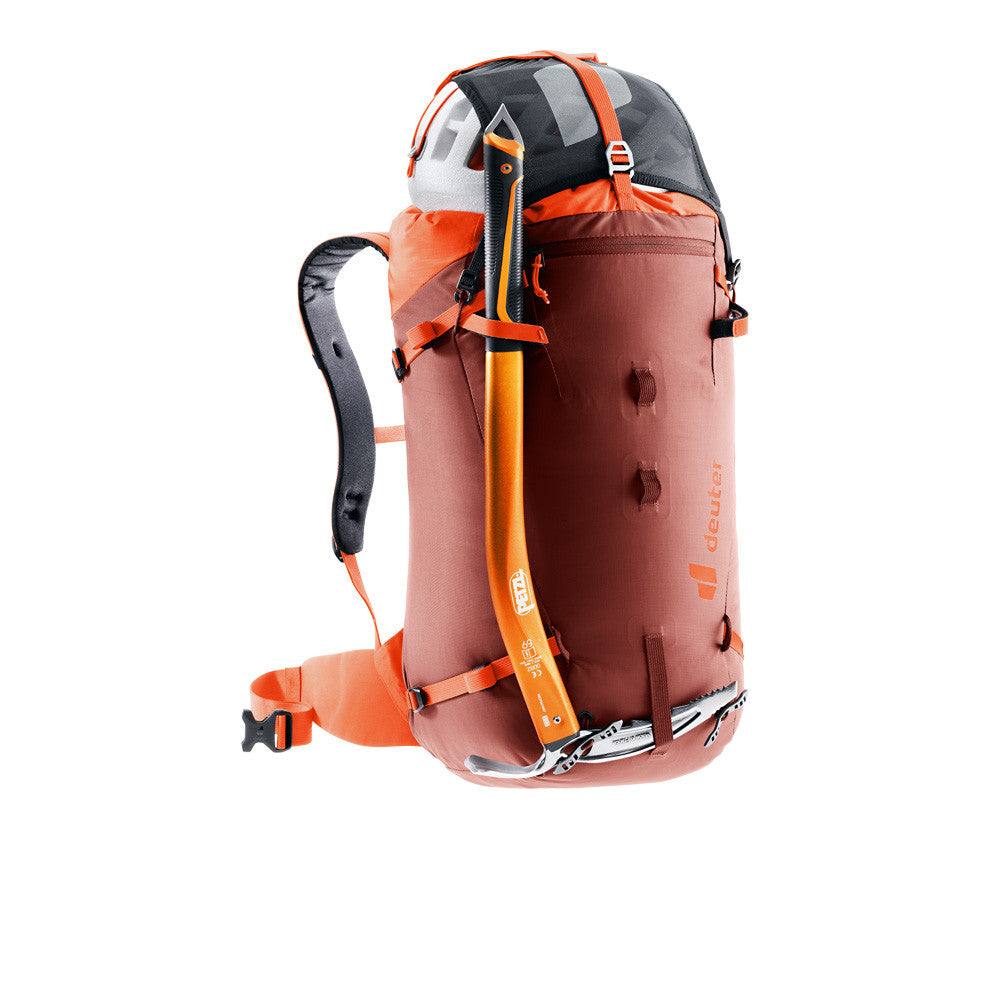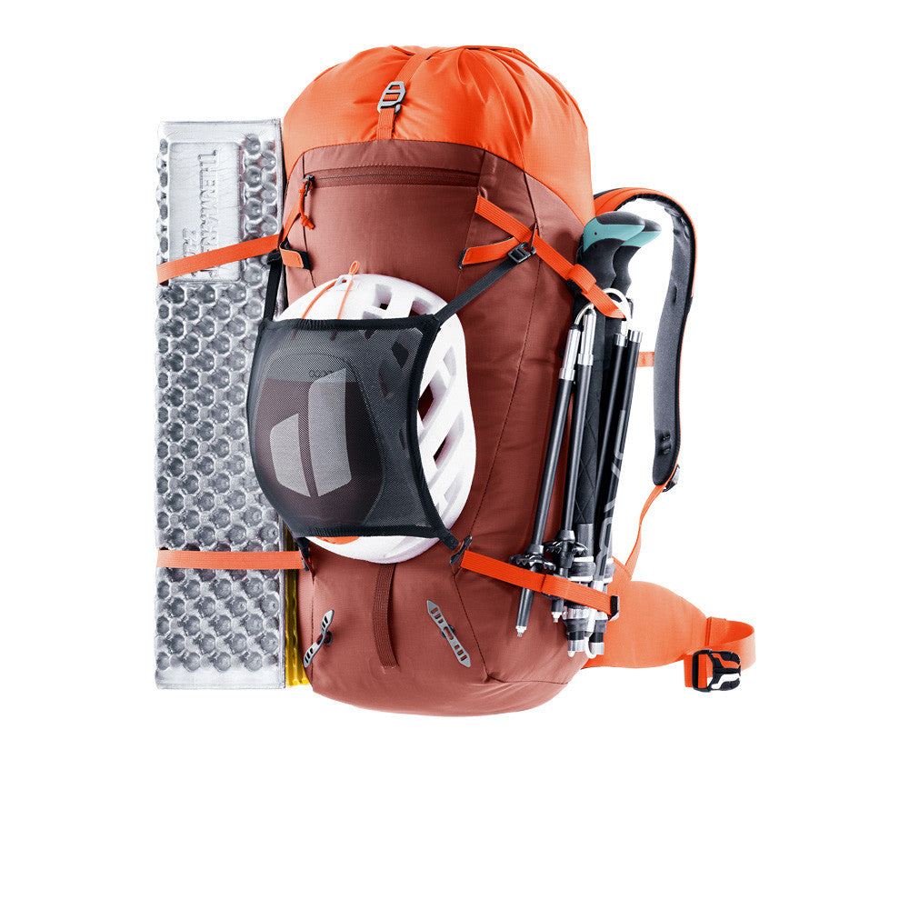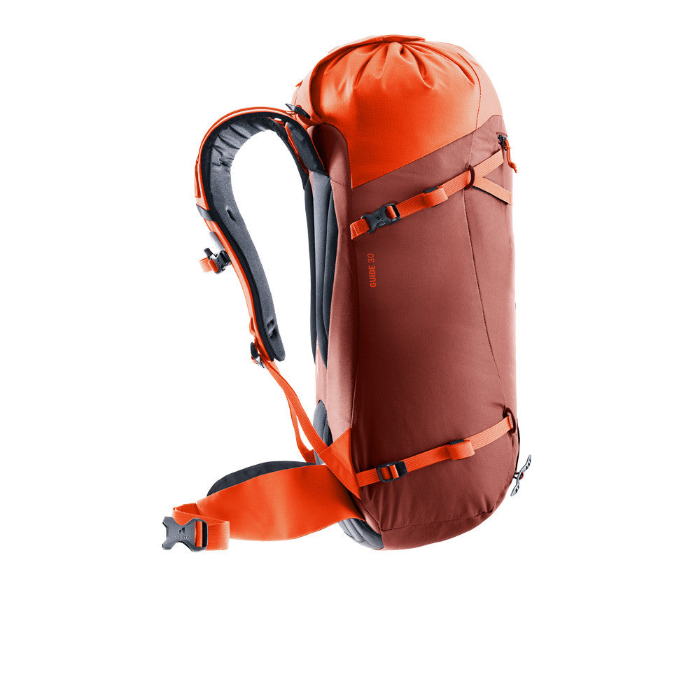 Además, la mochila Deuter Guide 30 está equipada con correas de compresión laterales que te permiten estabilizar tu carga y fijar equipo adicional como piolets o bastones de trekking.