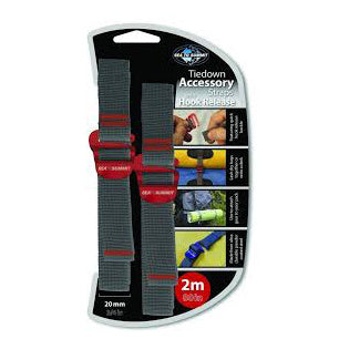El gancho de aleación de aluminio anodizado permite abrir y cerrar las correas más fácilmente, haciendo que el contenido sea mucho más accesible sin perder seguridad. Las correas de amarre con gancho Sea to Summit están disponibles en dos anchuras distintas - 10 mm y 20 mm – y tres longitudes – 1 m, 1,5 m y 2 m –.