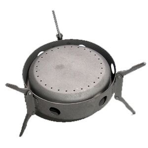 It can run on liquid alcohol or solid fuel pellets. Solid fuel works better than liquid fuel in cold and high altitude conditions.