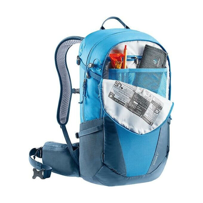 The FUTURA 27 backpack is perfect for day hikes. With the Aircomfort system on the back, it guarantees 25% less sweat for better performance . If by any chance your clothes get wet, you can quickly dry them in the elastic, breathable front pocket during the hike.