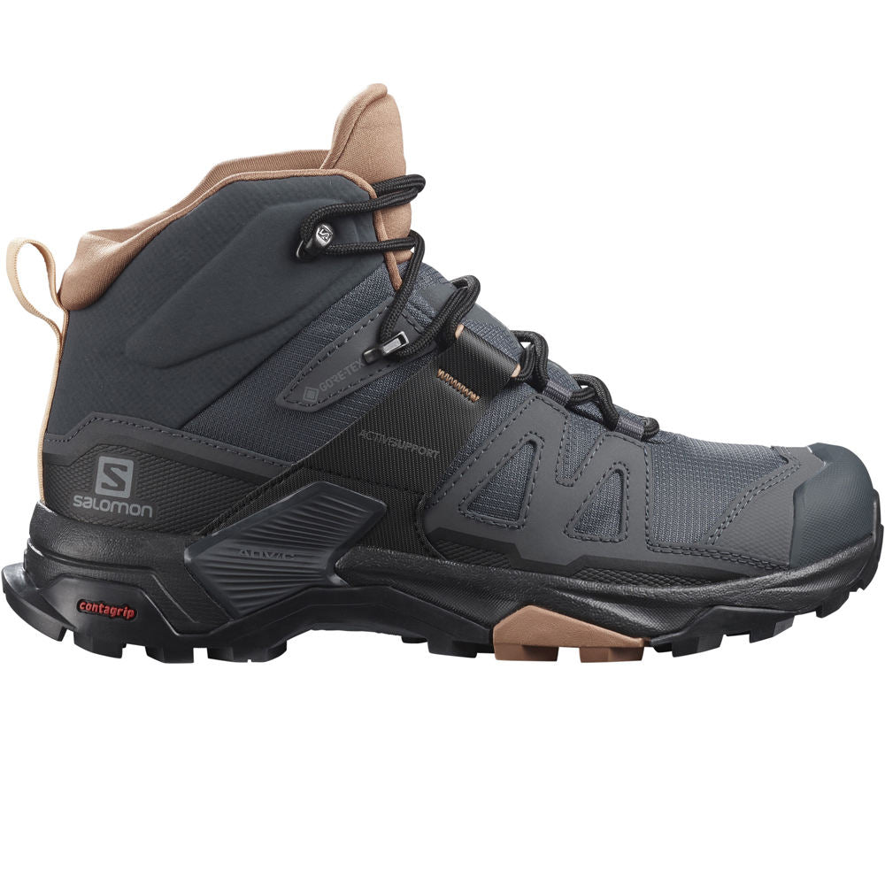 X Ultra 4 Mid GTX W is a women's hiking boot from the Salomon brand. It features ADV-C Chassis that holds the foot on difficult descents. Thanks to the mid-high shaft, the ankle remains supported on the most technical steps. This model has the Contagrip MA sole that offers maximum grip on any type of terrain, whether wet or dry. It also has the Gore-Tex membrane that protects your feet in bad weather and gives breathability to the feet.
