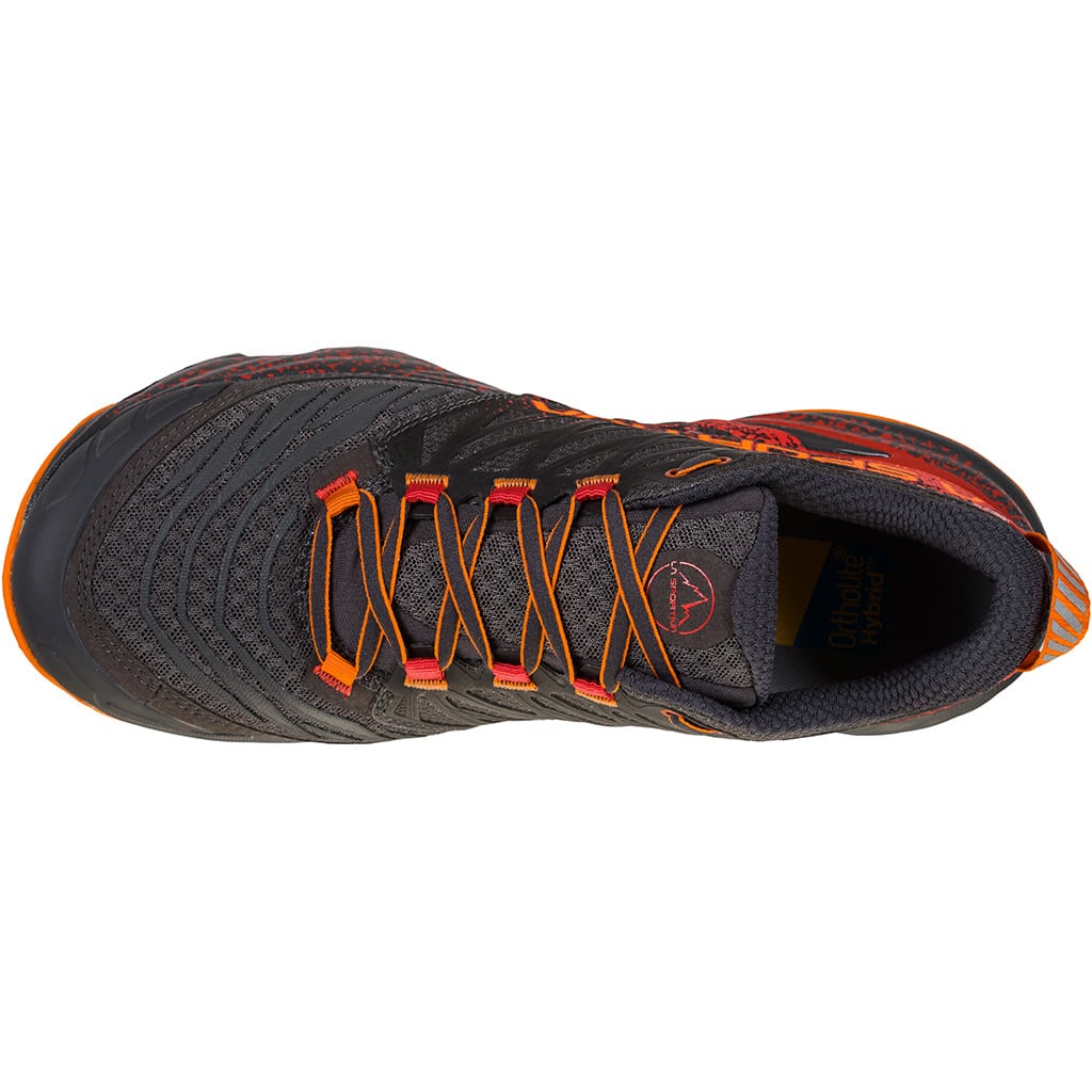 The Akyra Woman has a wide, soft last and a superior fit thanks to the seamless inner lining that resembles a sock structure that completely envelops the foot. Protection and stability are provided by the Trail Cage system that integrates the upper with the sole through the heel stabilizer and TPU side protections.