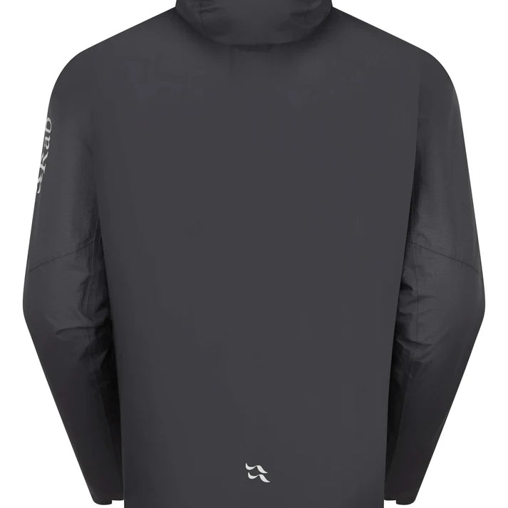 La chaqueta impermeable Rab Cinder Phantom en color ebony es ideal para hombres. Con un peso de solo 113.5g (talla M), ofrece una protección ultraligera contra la lluvia en un tamaño compacto. Construida con materiales de alta calidad, esta chaqueta es perfecta para tus aventuras al aire libre.