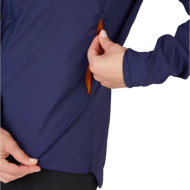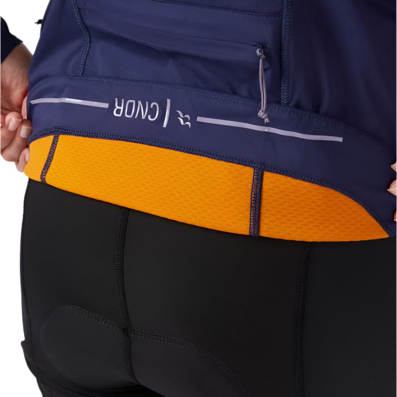 La chaqueta tiene un ajuste específico para el ciclismo con secciones preformadas que garantizan un confort y un rendimiento óptimos. El dobladillo trasero ampliado con tiras de silicona evita que la chaqueta se deslice durante la conducción. Las inserciones elásticas en los puños ofrecen una comodidad adicional y son compatibles con relojes deportivos, para que puedas controlar tus progresos sobre la marcha. Un bolsillo con cremallera YKK® en la zona lumbar, forrado con Pertex® Quantum Air, ofrece espacio suficiente para los tentempiés y los mapas y los protege de la humedad.
