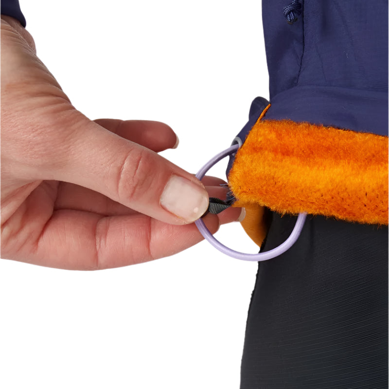 La parte superior del cuerpo, los hombros y la parte exterior de las mangas están forrados con Pertex® Quantum Air y un material de malla cálido que absorbe la humedad y te protege de los vientos fríos de cara. Un ligero forro de malla garantiza una ventilación óptima en las zonas especialmente propensas al sudor, como las axilas y la espalda. Dos aberturas laterales de ventilación ocultas facilitan la regulación de la temperatura, incluso con los dedos fríos.