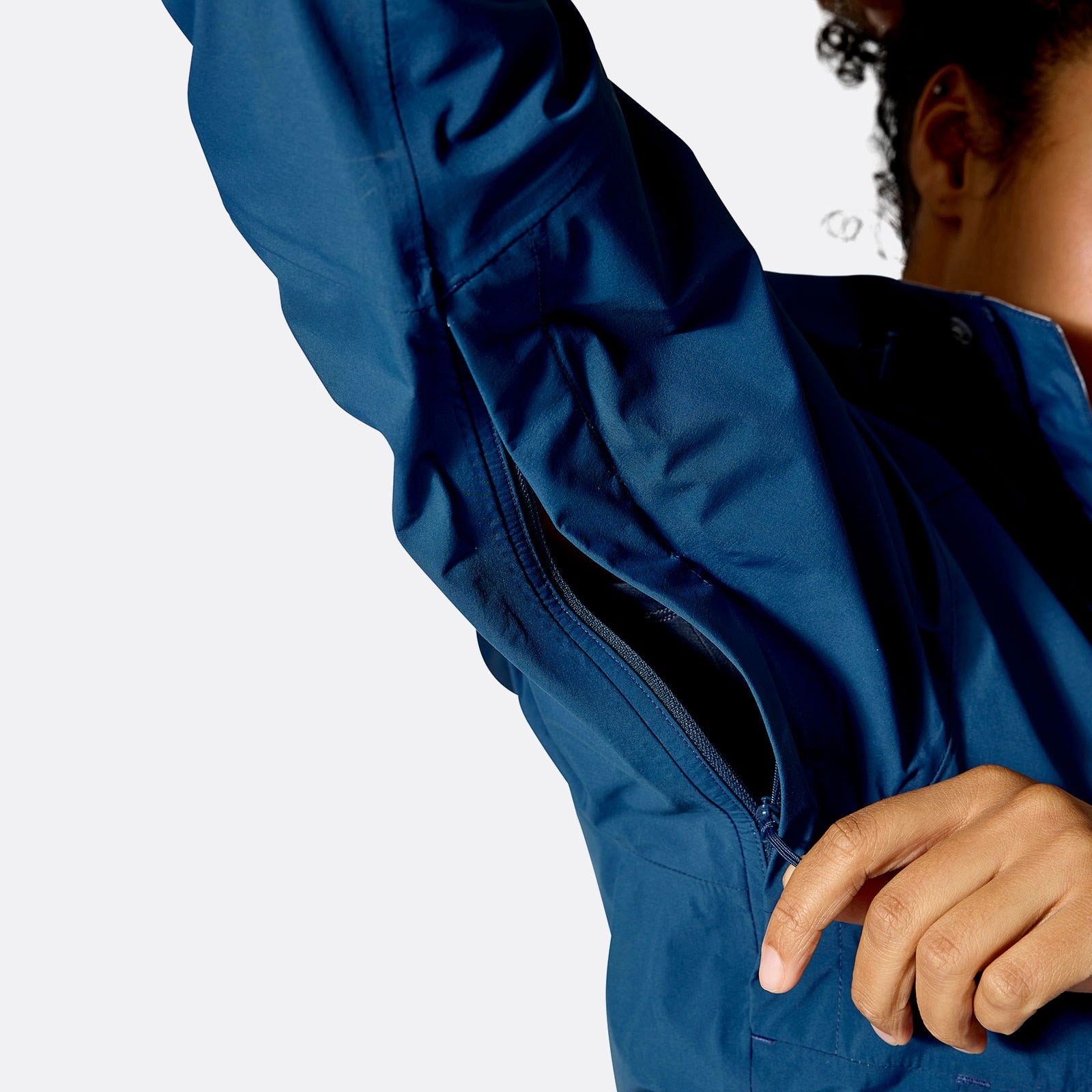 - Ventilaciones bajo los brazos con cremalleras bidireccionales para regular el calor en movimiento.