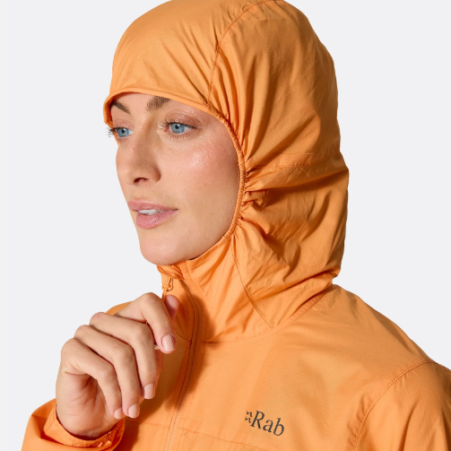 La Rab Windgather Hoody para mujer es una chaqueta cortavientos ultraligera diseñada para actividades aeróbicas como trail running, trekking rápido, ciclismo o alpinismo ligero. Ofrece una combinación ideal de protección contra el viento y transpirabilidad, perfecta para mantener el confort durante el esfuerzo en condiciones cambiantes.