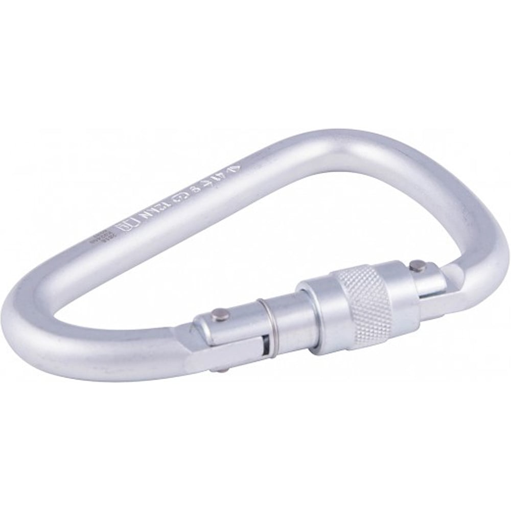 Mosquetón acero industria gran tamaño. Mosquetón de acero zincado, forjado en frío, con cierre seguridad rosca. Modelo grande de la gama STEEL, diseñado para equipamientos, trabajos verticales y rescate. Material: acero. Dimensiones: 125 x 77mm. Peso: 260 grs. Resistencia eje mayor: 30kN. Resistencia con el cierre abierto: 10kN. Apertura del cierre: 23mm.