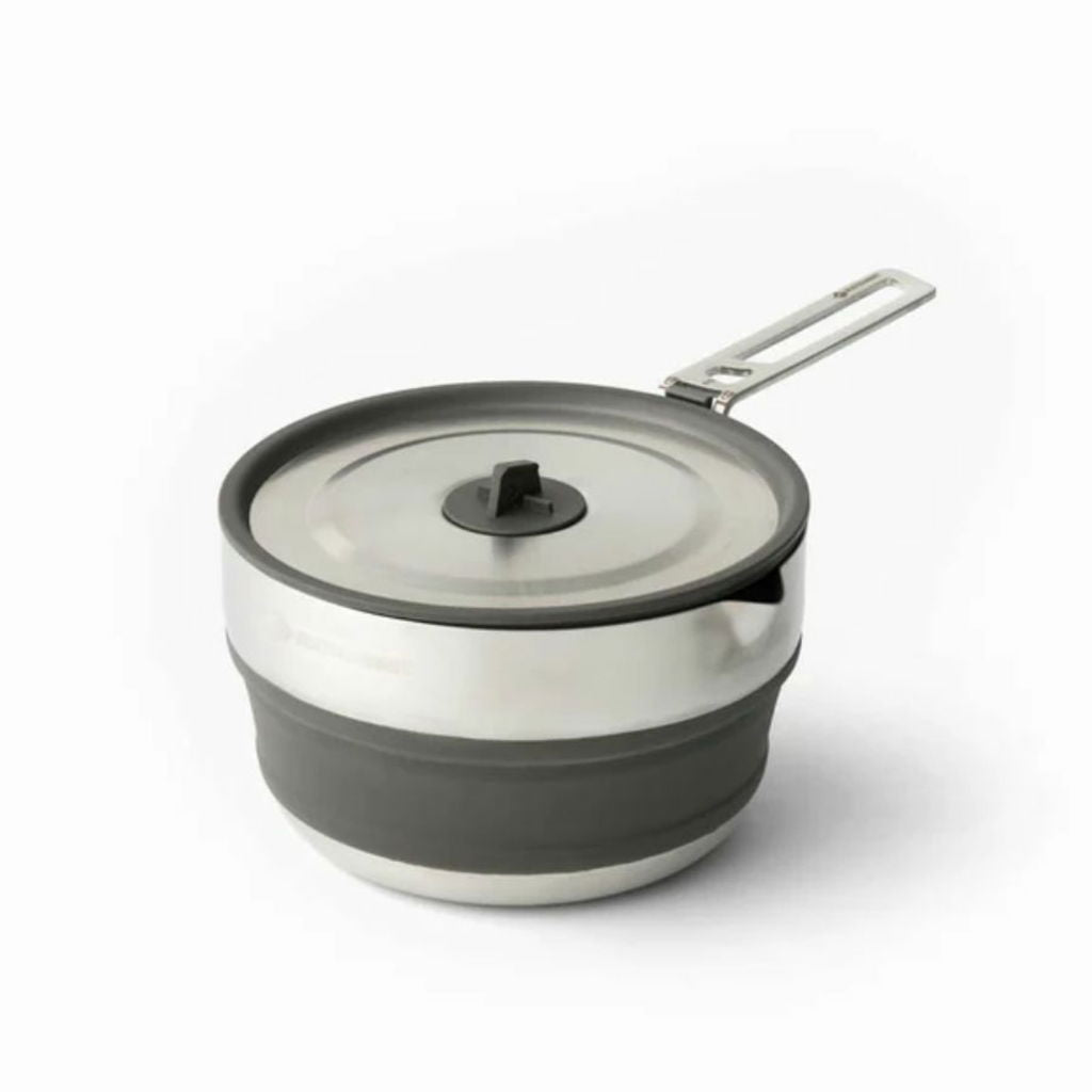 Con la olla plegable de acero inoxidable de la colección Detour de Sea to Summit, podrás preparar comidas deliciosas en tus aventuras al aire libre, sin tener que depender de comidas precocinadas o bocadillos.