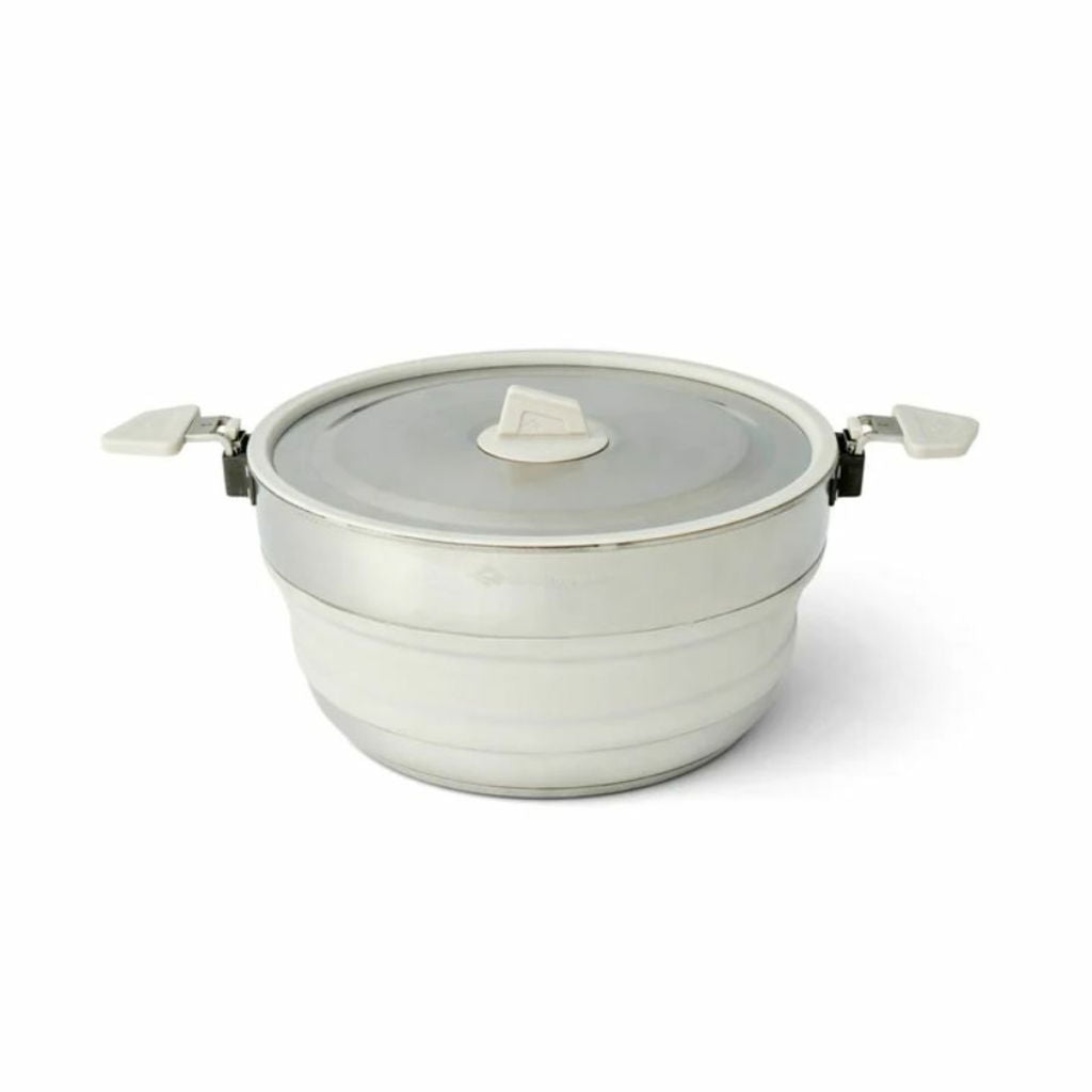 Con la olla plegable de acero inoxidable de la colección Detour de Sea to Summit, podrás preparar comidas deliciosas en tus aventuras al aire libre, sin tener que depender de comidas precocinadas o bocadillos.