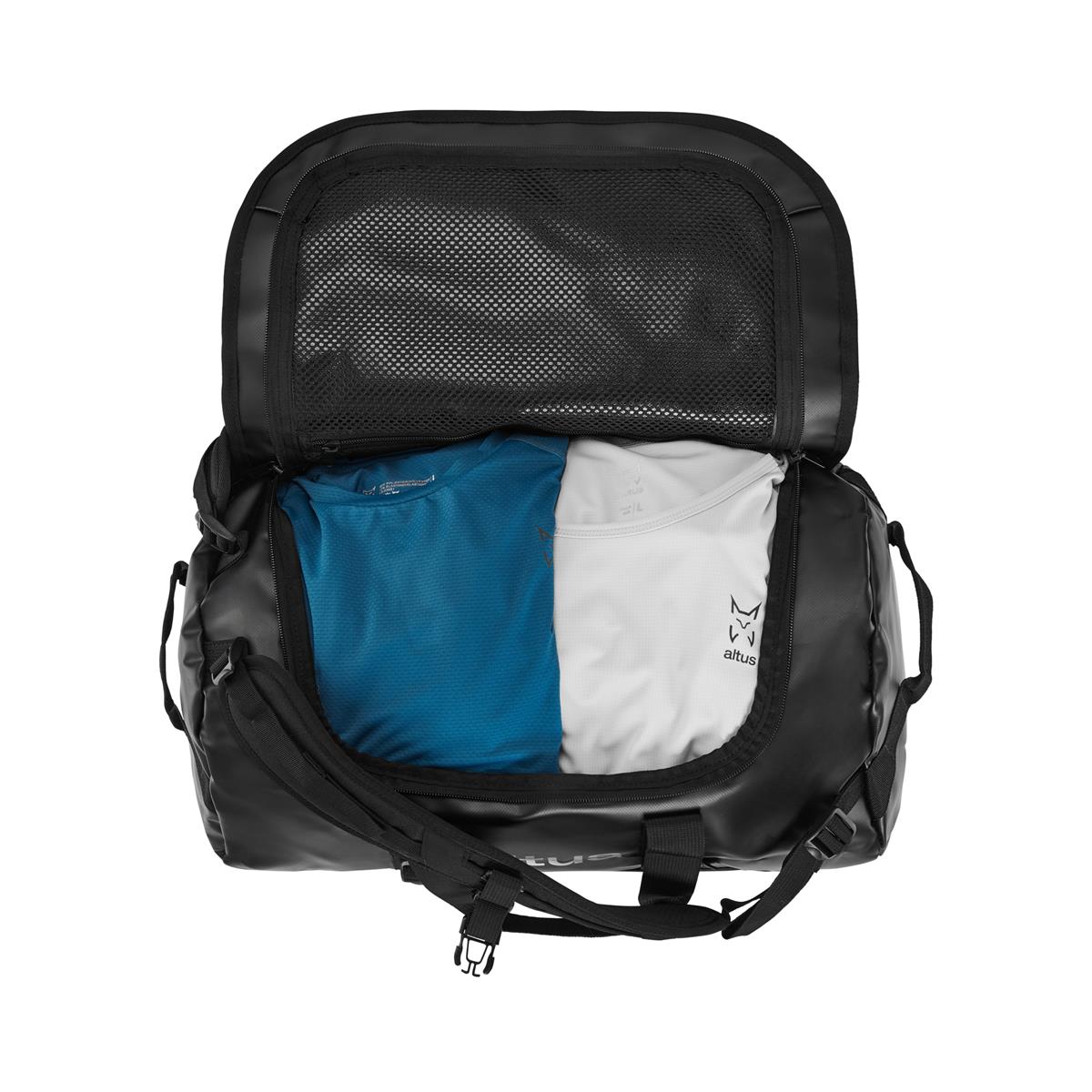 Con una capacidad de 30 litros, este petate proporciona amplio espacio para tu equipo, y su diseño inteligente permite transportarlo cómodamente tanto con sus asas como tipo mochila, gracias a las bandoleras extraíbles. La apertura tipo D facilita el acceso al interior, permitiendo organizar y optimizar el espacio de manera eficiente.