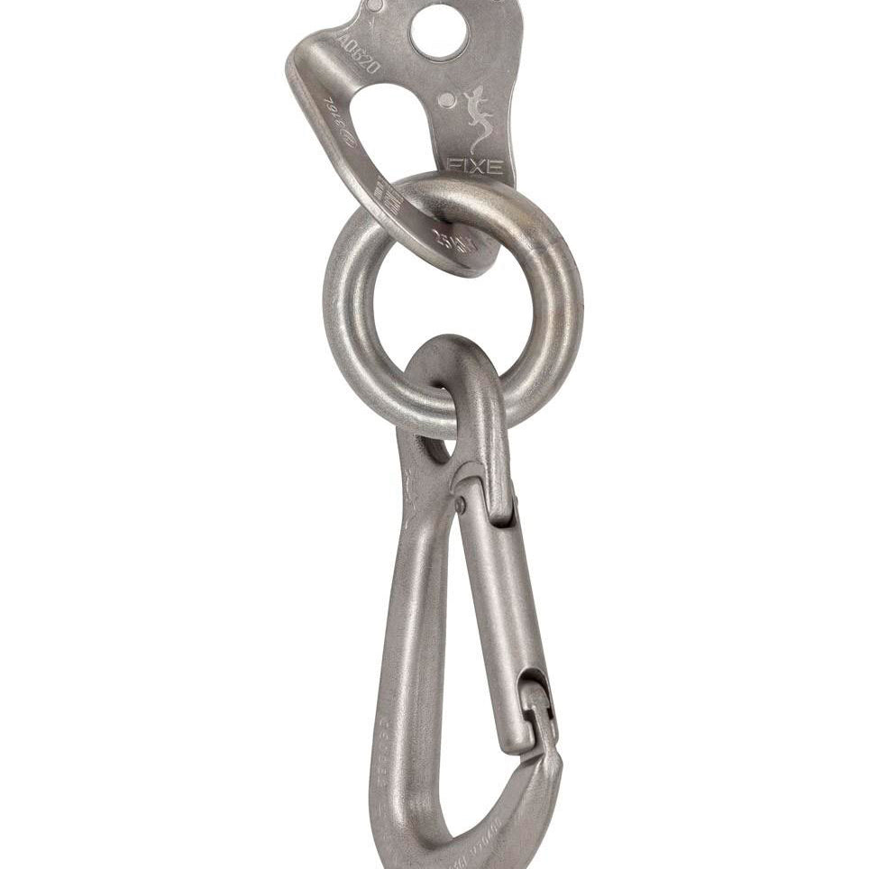 Reunión individual Tipo C en acero inoxidable 316L, para entornos de exterior / cincado ecotri, para entornos de interior. Punto de fijación compuesto por plaqueta Fixe 1 para tornillería de M10 /M12. Punto de anclaje con anilla. Diseñada y fabricada en Barcelona-Pirineus.CARACTERÍSTICAS DE LOS COMPONENTES Geometría plaqueta Fixe 1: Borde interno redondeado para un menor desgaste de los mosquetones. Direcciona el mosquetón para un óptimo trabajo en techos.Conical Washer. Más control en el par de apriete. Tres pins antirotación. Superficie optimizada para lograr un contacto pleno. Características plaqueta Fixe 1:Para tornillos M10/M12. Peso: 57g (M10) / 56 (M12). Resistencia límite: 25kN.Material: acero cincado ecotri / inoxidable 316L.Características de la anilla: Anilla siempre presente entre componentes para una mejor maniobrabilidad. Soldadura en TIG. Mejor resistencia a la corrosión. Diámetro interior: 33mm. Resistencia límite: 25kN. Material: acero cincado ecotri / inoxidable 316L.