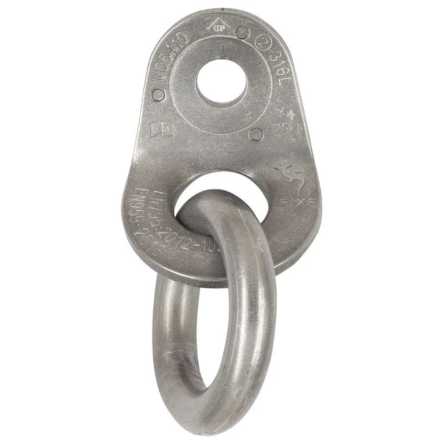 Reunión individual Tipo C en acero inoxidable 316L, para entornos de exterior / cincado ecotri, para entornos de interior. Punto de fijación compuesto por plaqueta Fixe 1 para tornillería de M10 /M12. Punto de anclaje con anilla. Diseñada y fabricada en Barcelona-Pirineus. CARACTERÍSTICAS DE LOS COMPONENTES Geometría plaqueta Fixe 1: - Borde interno redondeado para un menor desgaste de los mosquetones. - Direcciona el mosquetón para un óptimo trabajo en techos. - Conical Washer. Más control en el par de apriete. - Tres pins antirotación. - Superficie optimizada para lograr un contacto pleno. Características plaqueta Fixe 1: - Para tornillos M10/M12. - Peso: 57g (M10) / 56 (M12). - Resistencia límite: 25kN. - Material: acero cincado ecotri / inoxidable 316L. Características de la anilla: - Anilla siempre presente entre componentes para una mejor maniobrabilidad. - Soldadura en TIG. Mejor resistencia a la corrosión. - Diámetro interior: 33mm. - Resistencia límite: 25kN. - Material: acero cincado ecotri / inoxidable 316L.