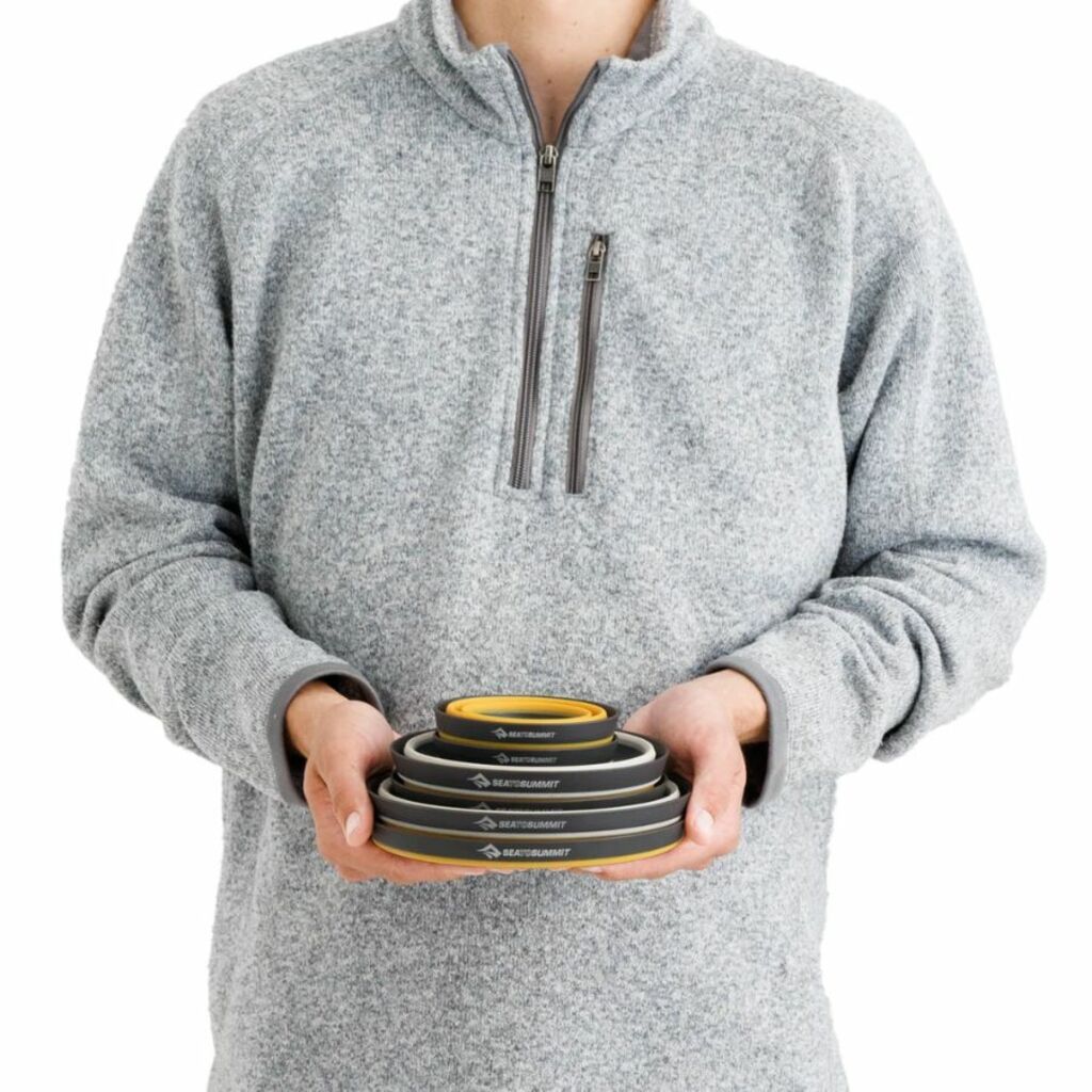 Organiza tu equipo de forma eficiente y prepárate para disfrutar de momentos inolvidables en cada viaje con el set de 6 piezas de vajilla plegable Frontier de Sea to Summit.