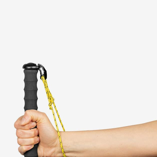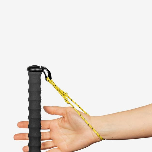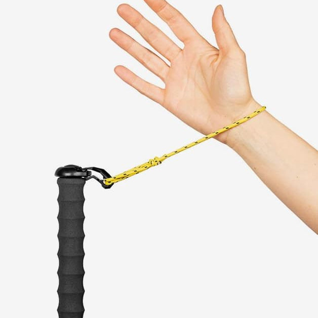Su largo mango ergonómico de espuma le permite mover la mano en las distintas posiciones de sujeción. Tiene una correa de cordón mínima ajustable y el innovador sistema SSR (Strap Safety Release): está apretado cuando se tira hacia abajo o hacia afuera, pero se suelta cuando se tira hacia arriba (más de 90°).