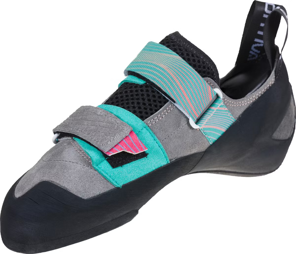 Pie de gato de doble cierre de gancho y bucle ideal para principiantes y para todos los escaladores que necesitan un producto que sea cómodo y rápido de calzar. Perfecto para usar en rocódromo.