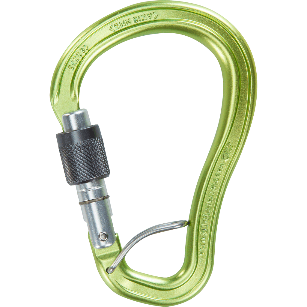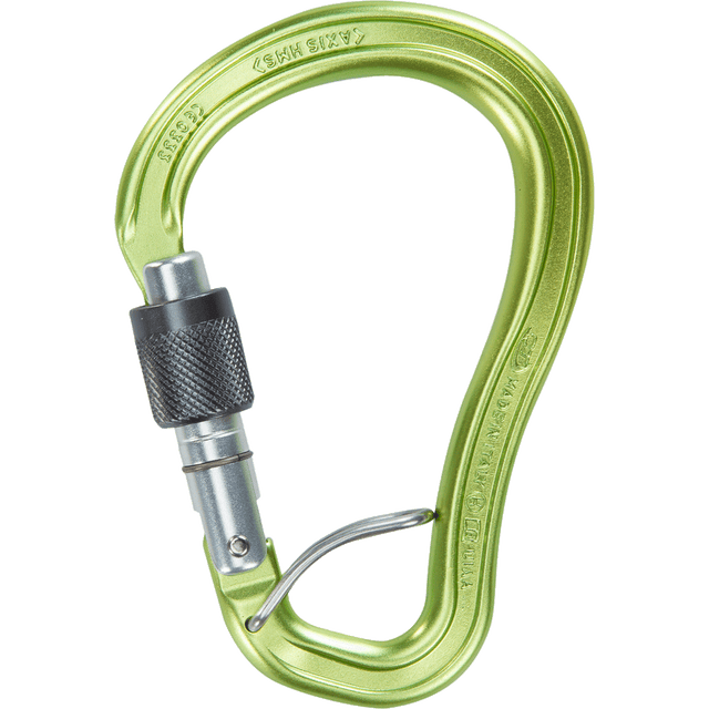 Mosquetón HMS de aleación ligera forjado en caliente con cierre de rosca, de grandes dimensiones y abertura amplia, diseñado para el uso en alpinismo, maniobras de recuperación y operaciones de rescate.