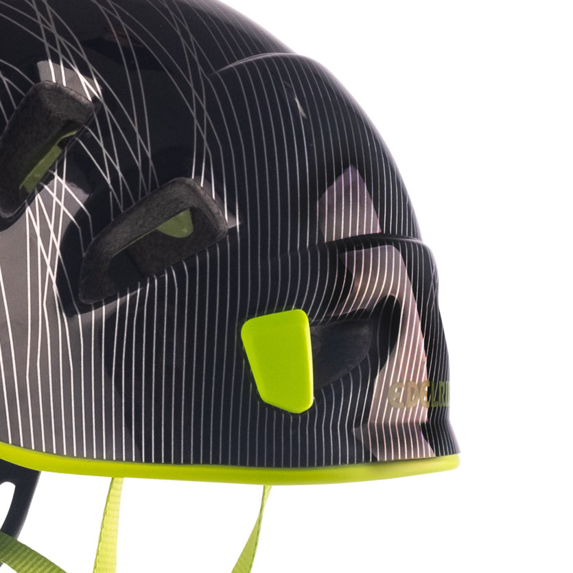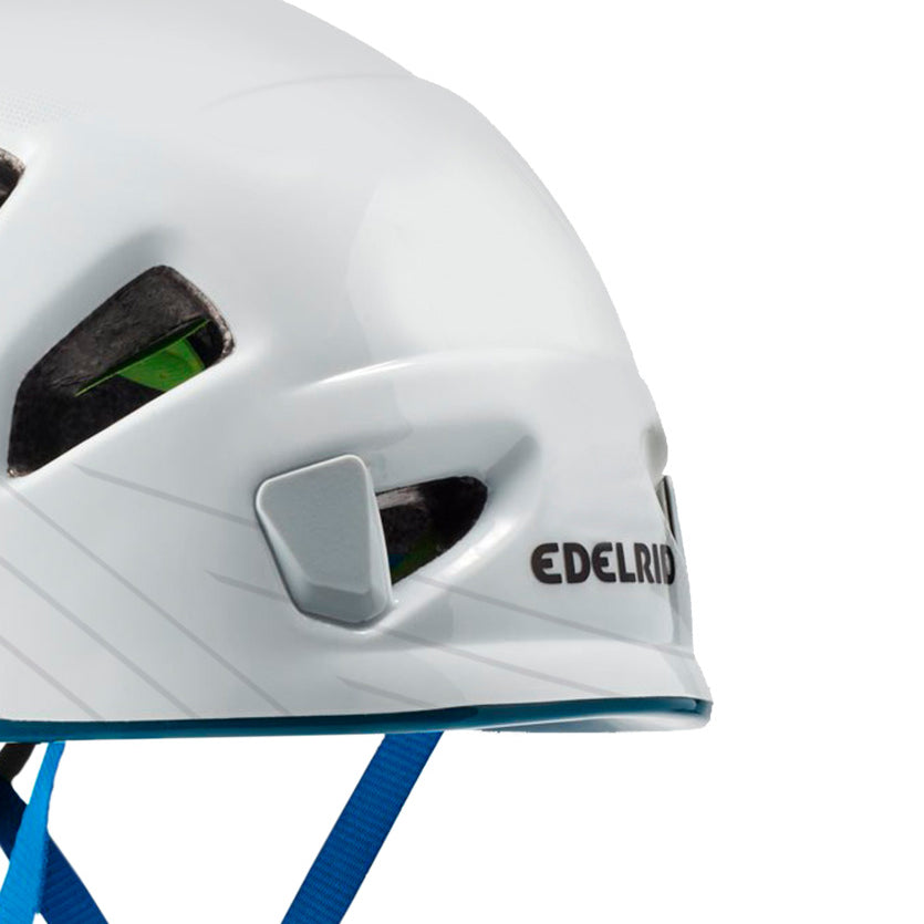 Casco ultraligero y robusto de máxima resistencia contra impactos y caídas de rocas. Construcción ligera In-Mold con un núcleo de espuma de poliestireno expandido y una carcasa dura de policarbonato.