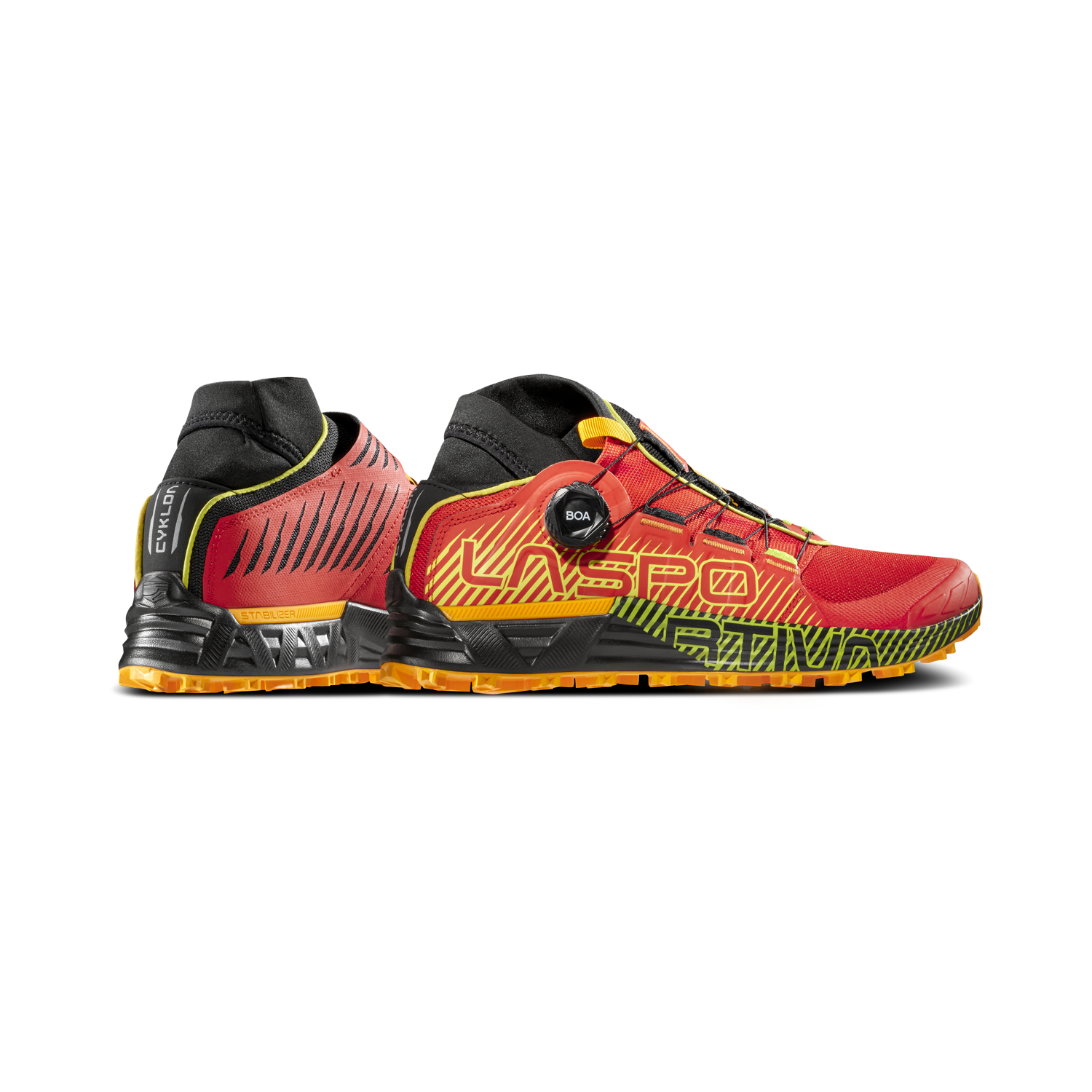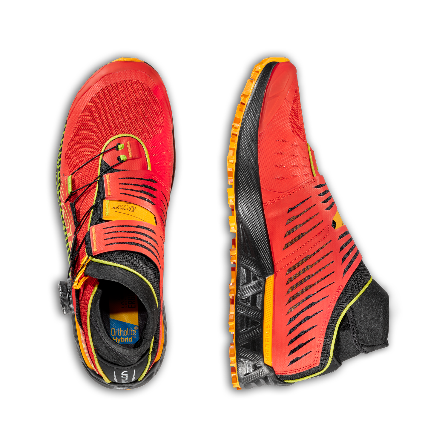 Zapatilla alto rendimiento ideal para media distancia en terrenos técnicos resultado de la investigación u el desarrollo entre La Sportiva y BOA®, es un producto que garantiza estabilidad, precisión y adaptación perfecta gracias al nuevo sistema de cierre Dynamic Cage con BOA® Fit System integrado.