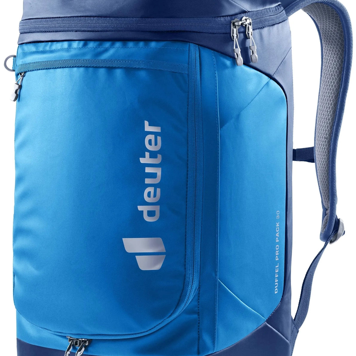 La mochila de viaje Duffel Pro Pack 30 de DEUTER 3510026-1213 es ideal para viajar, cuenta con correas acolchadas, asas de agarre y un compartimento para sujetar a equipaje con ruedas. Además, tiene compartimentos inteligentes y una funda extraíble para portátil. Perfecta para tus aventuras.