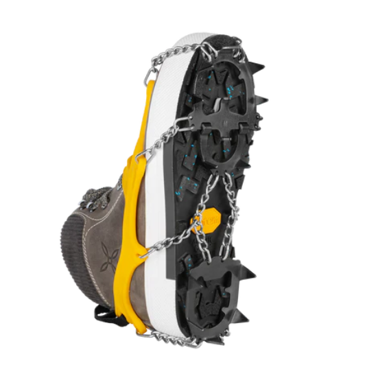 El microcrampón Explorer es un crampón robusto y compacto, diseñado para ser utilizado en terrenos resbaladizos, con nieve, hielo, barro. Gracias a la forma de la goma se adapta a muchos tipos de calzado y garantiza estabilidad en el pie. 14 puntas de acero con tratamiento anticorrosión. Cordón trasero para facilitar el calce. Se suministra junto con su estuche con cremallera. Disponible en cuatro tamaños (S-M-L-XL)