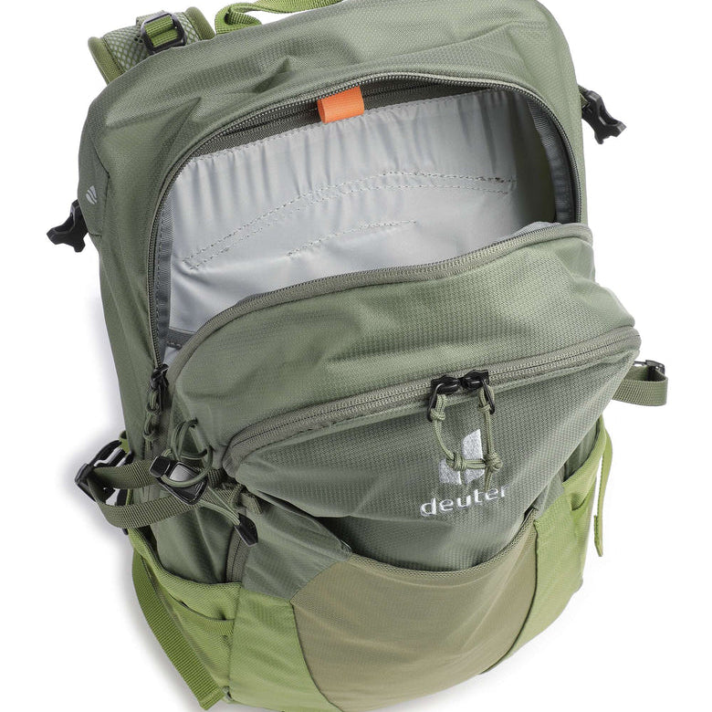 La mochila FUTURA 23 es perfecta para las caminatas deportivas de un día. El sistema de la espalda Aircomfort, otorga una ventilación máxima en la espalda. Si la ropa se humedece, puede secarse en el bolsillo delantero permeable al aire durante el recorrido.