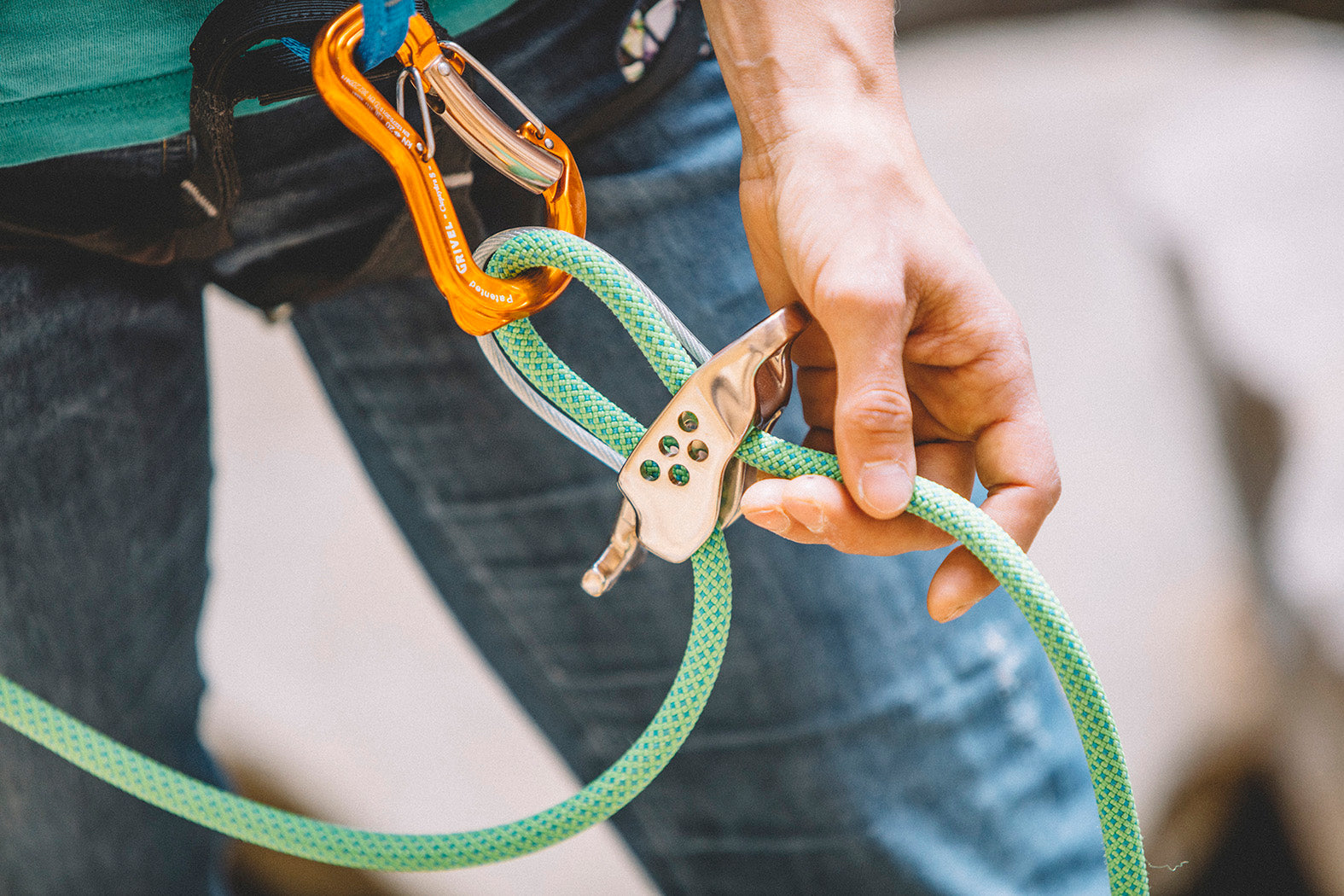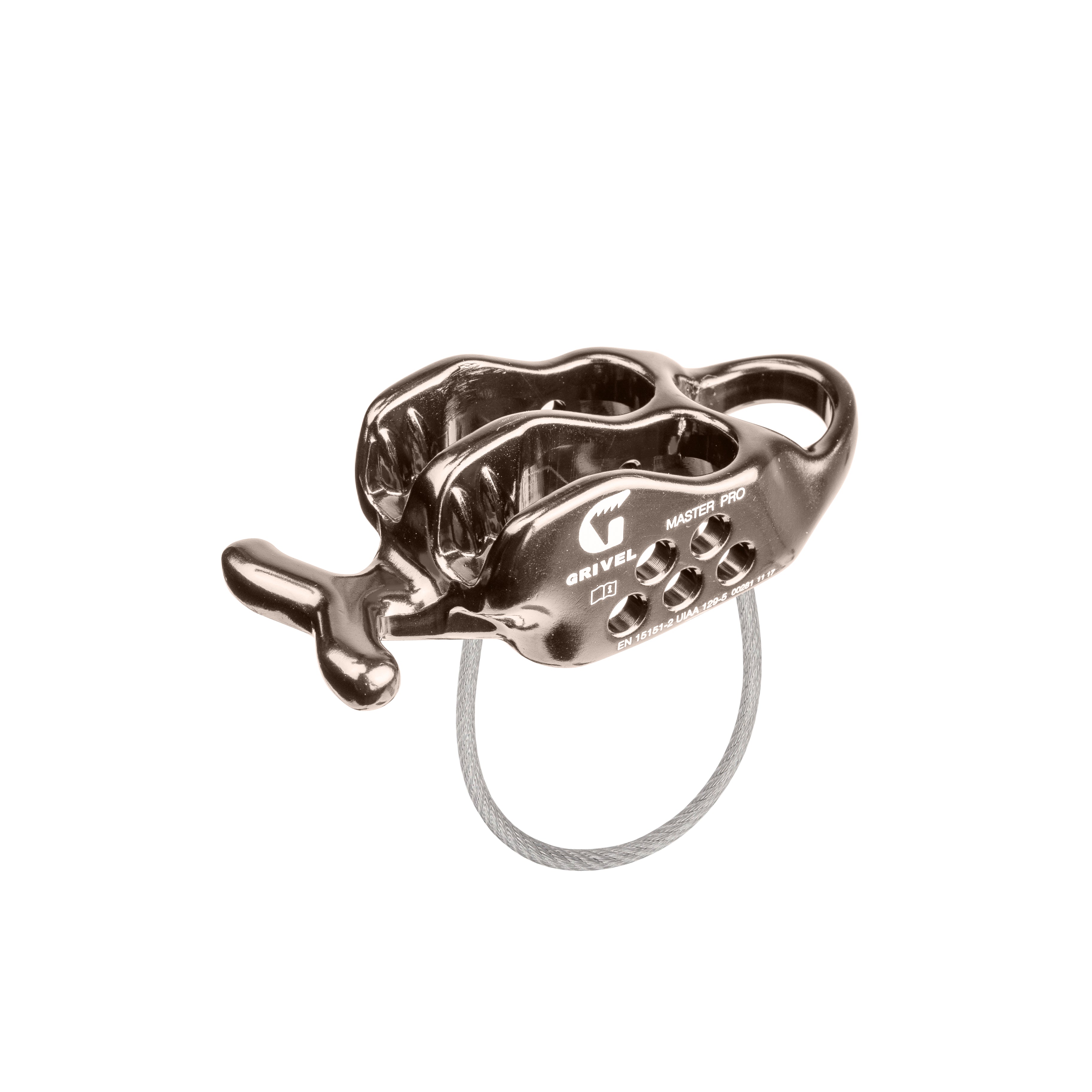 Master Pro fue creado para asegurar y hacer rappel. Es una herramienta versátil, dinámica y confiable para minimizar la fuerza transmitida a los anclajes, el aseguramiento y el desgaste con el tiempo de la cuerda. También se puede utilizar en modo guía como placa autobloqueante, para asegurar un segundo. Los dos "cuernos" que se colocan en uno de los dos extremos tienen dos funciones principales: