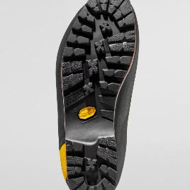 - Mínimo impacto en duros terrenos gracias a su suela Vibram Impact Brake System reemplazable, integramente cramponable.