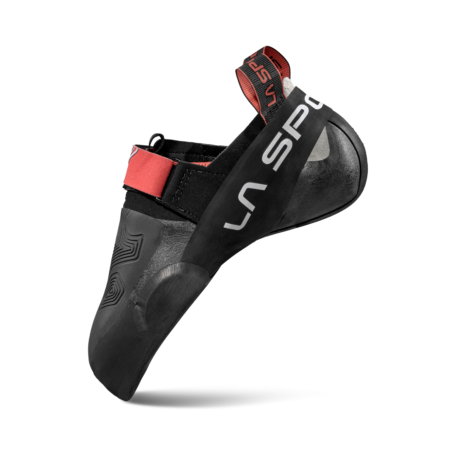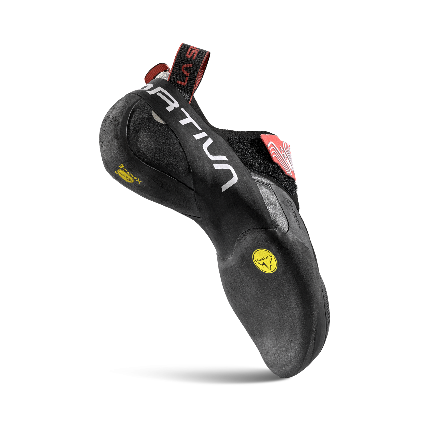 Pies de gato La Sportiva Theory, blandos y reactivos, para profesionales del búlder indoor. Diseño agresivo, gran fricción y precisión. Ideales para volúmenes y pasos dinámicos.