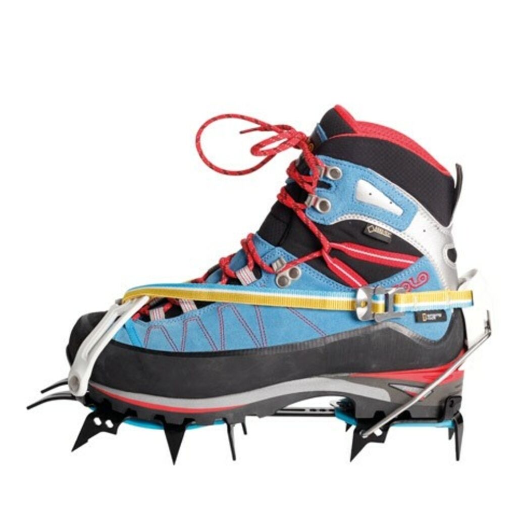 Los crampones semiautomáticos Singing Rock Fakir III Semi-Classic tienen 12 puntas y están recomendados para montañismo clásico. Han sido diseñados para rendir en todo tipo de terrenos: desde travesías por glaciares y pendientes nevadas hasta corredores clásicos de hielo. Incluyen hebillas Rock&Lock que facilitan el ajuste y liberación de las cintas, pesan 900 gramos el par y son compatibles con botas de trekking rígidas con ribete o ranura en el talón.