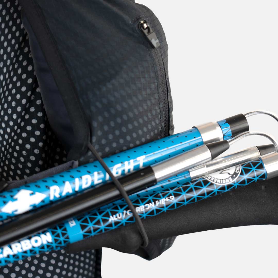 - Compatible con el carcaj Raidlight para guardar tus bastones o 6 litros extra
