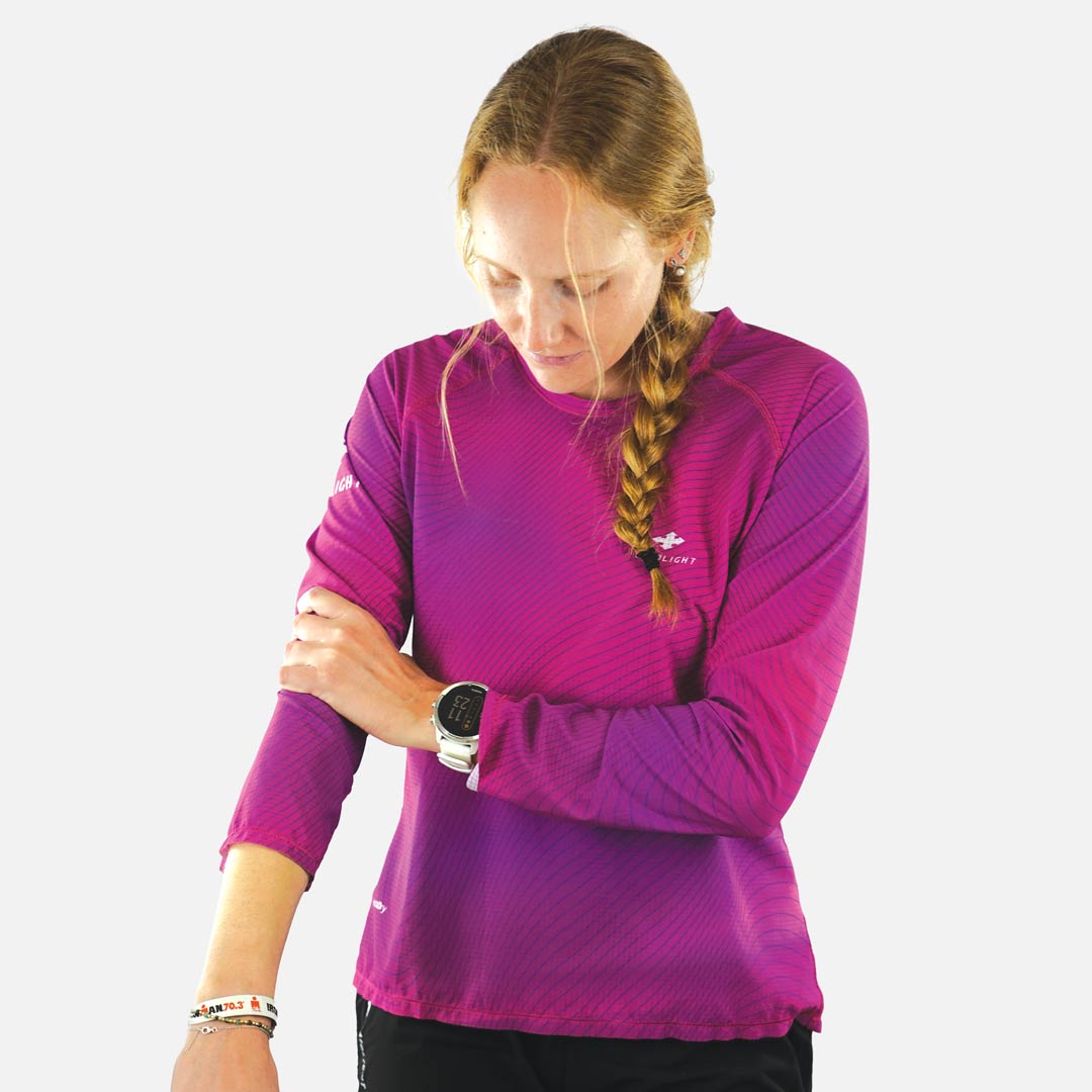 La camiseta de trail de manga larga Warm EcoDry Made In France para mujer promete el máximo confort. Diseñado en un material reciclado microperforado, ligero y bielástico, ofrece un secado rápido y muy transpirable.