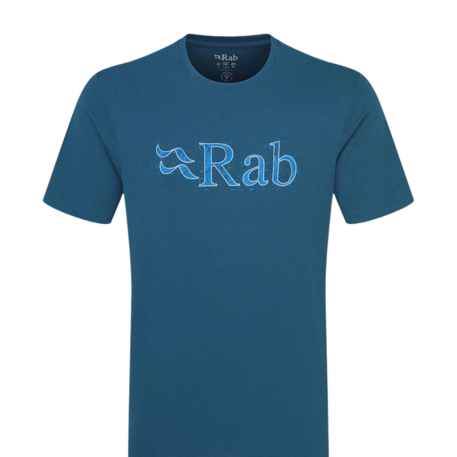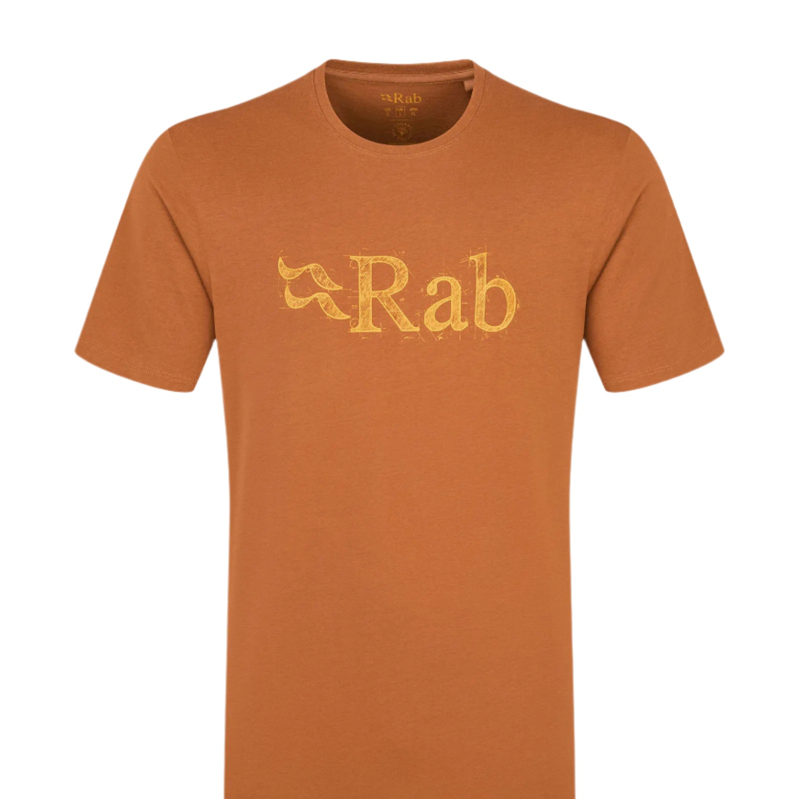 Camiseta de algodón extrasuave y cómoda para uso diario. Su diseño incorpora un estampado frontal de un esbozo del logotipo de Rab, cuello redondo y corte informal.