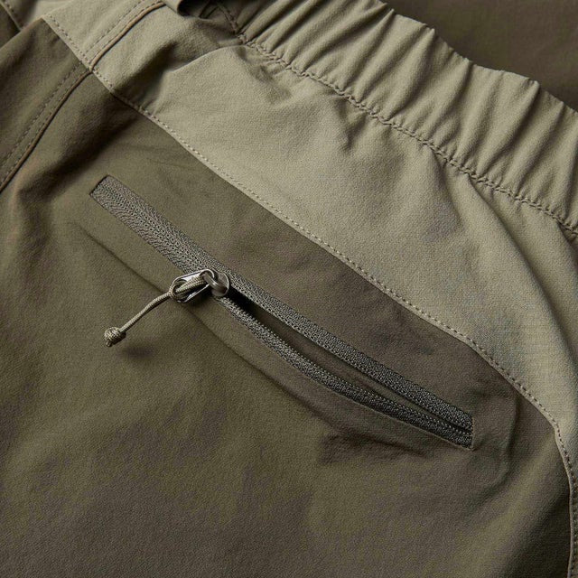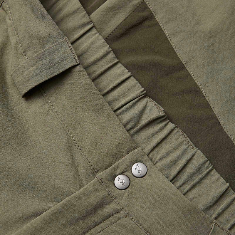 - La cintura parcialmente elástica con cierre a presión brinda soporte durante los largos días en la montaña.