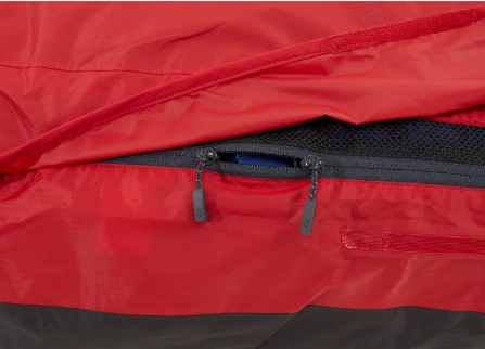 Construido con dos pesos de nailon resistente y acabado con DWR sin fluorocarbono, resiste un uso riguroso y condiciones impredecibles. Totalmente resistente al agua con una base de 70D. Tiene una entrada principal con cremallera y un panel de malla transpirable para mayor ventilación, lo que ayuda a minimizar la condensación.