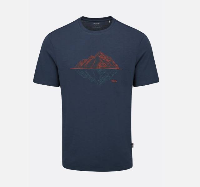 Camiseta informal extrasuave hecha con tejido de mezcla de TENCEL™ de secado rápido que dispersa la humedad, ideal para cualquier aventura al aire libre. Con estampado exclusivo de montañas, cuello redondo y corte holgado, es cómoda y elegante.