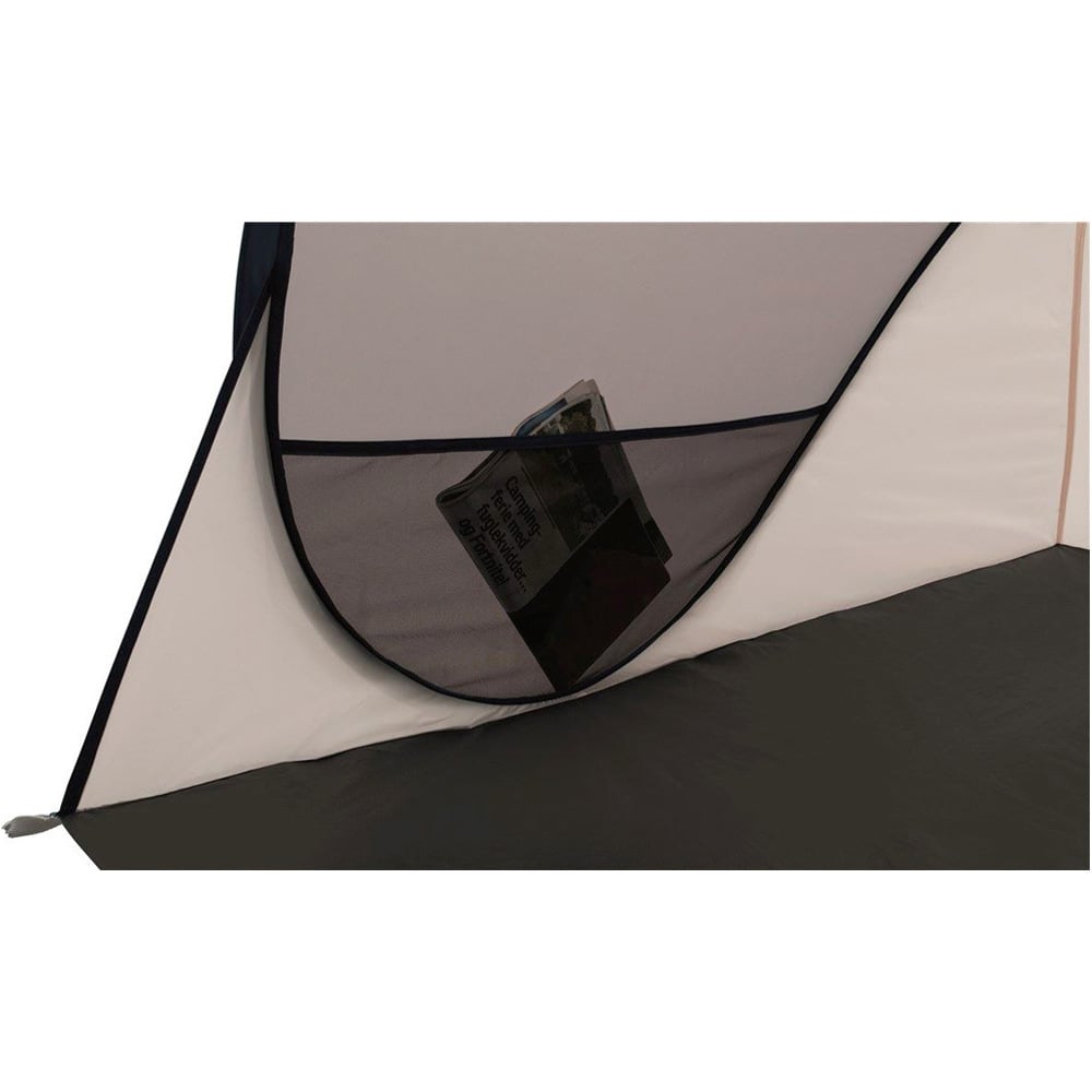 Al abrirse directamente desde la bolsa de transporte circular, el diseño de frente abierto con suelo integral de polietileno duradero garantiza protección en tres lados contra el sol, el viento y la lluvia ligera sin bloquear la vista, lo que es especialmente útil con niños muy pequeños. Las líneas guía ayudan a mantener la forma.