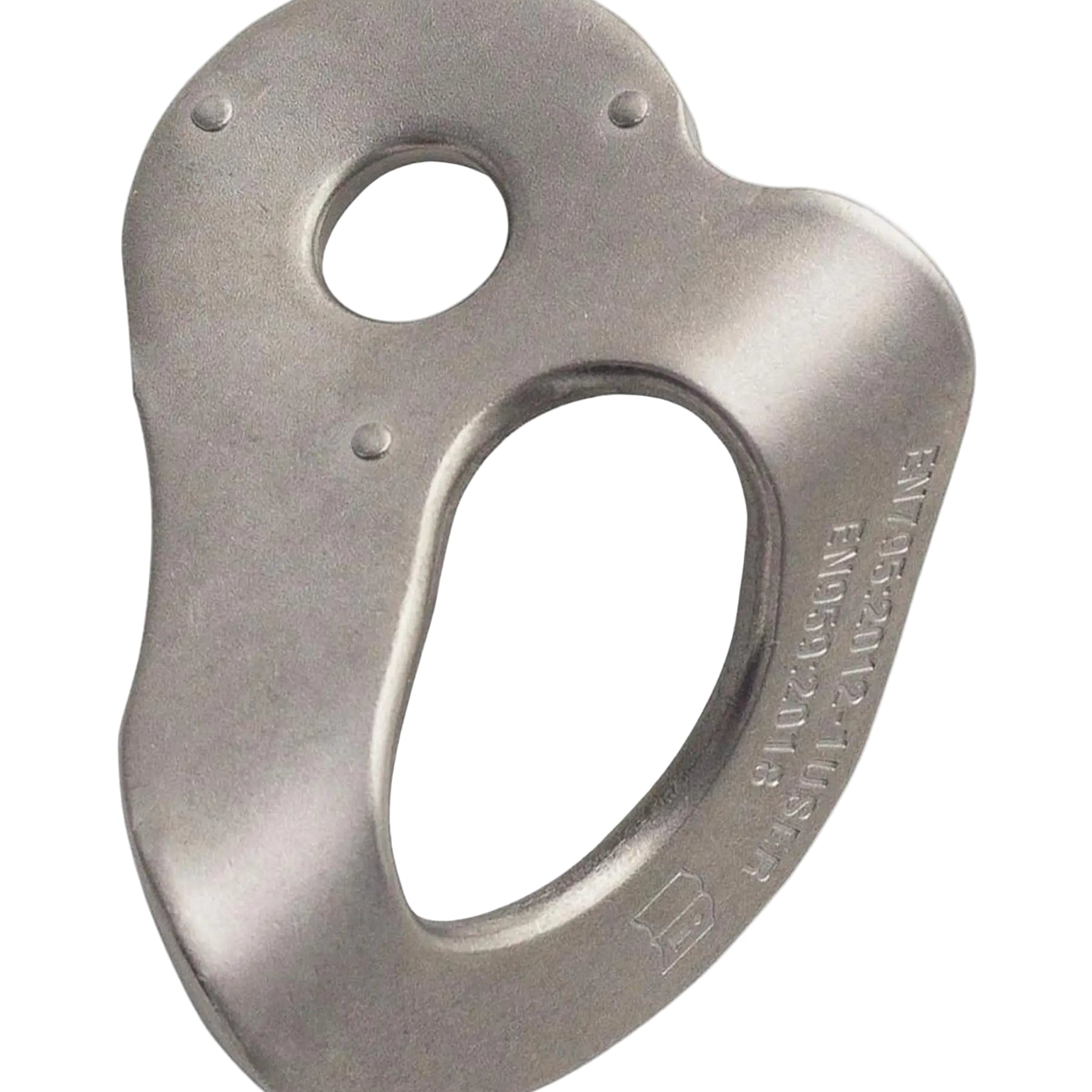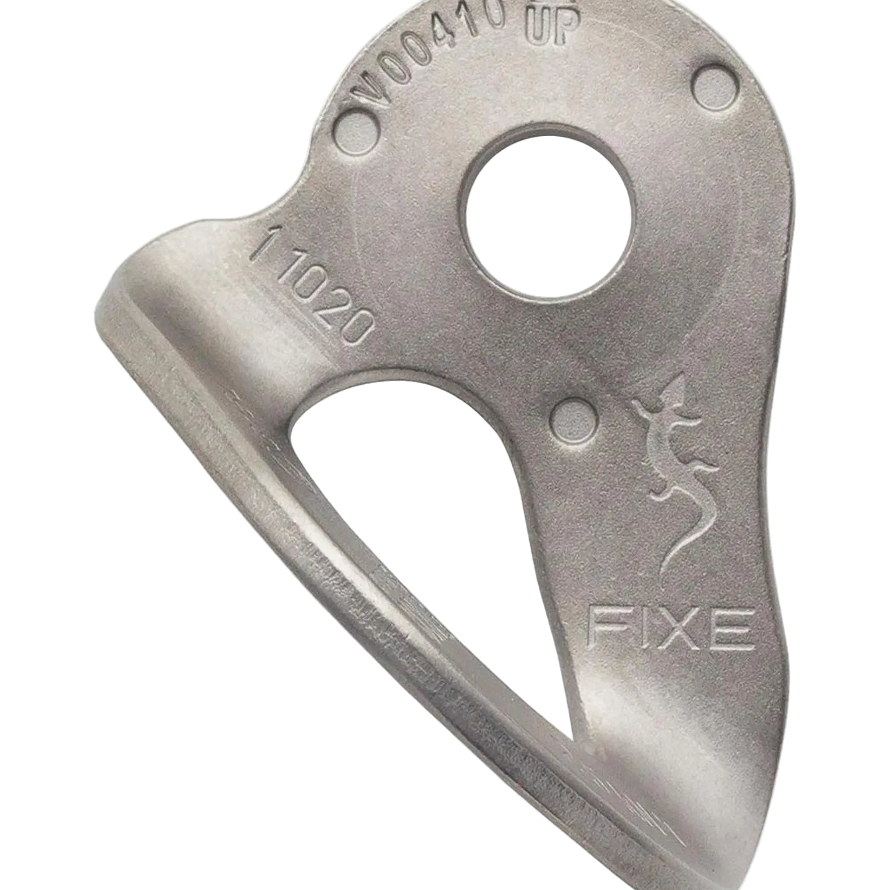 Geometría plaqueta Fixe 1. Borde interno redondeado para un menor desgaste de los mosquetones. Direcciona el mosquetón para un óptimo trabajo en techos. Conical Washer. Más control en el par de apriete. Tres pins antirrotación. Superficie optimizada para lograr un contacto pleno.