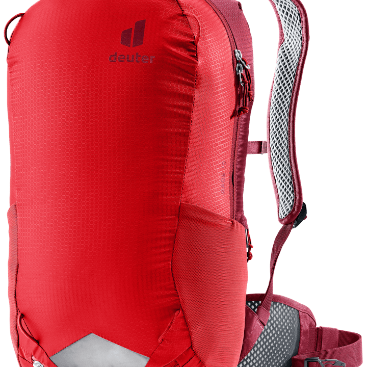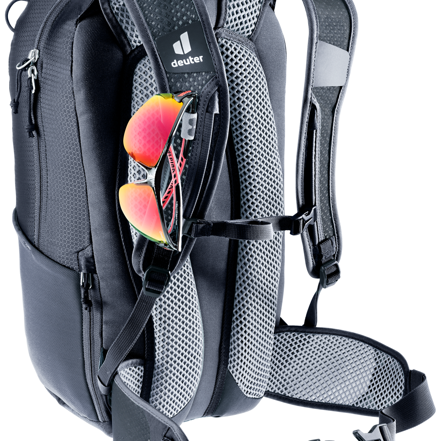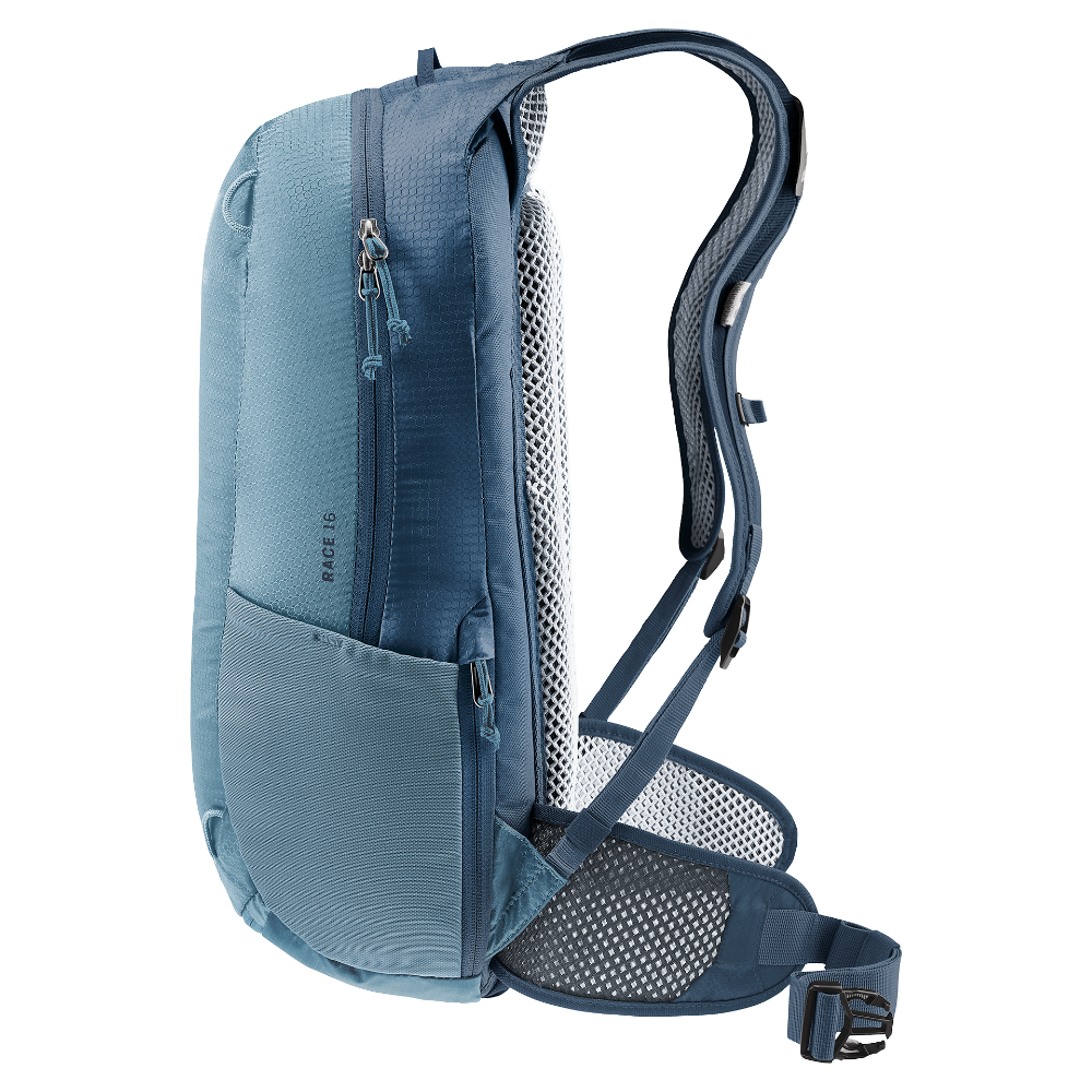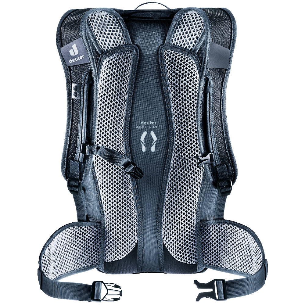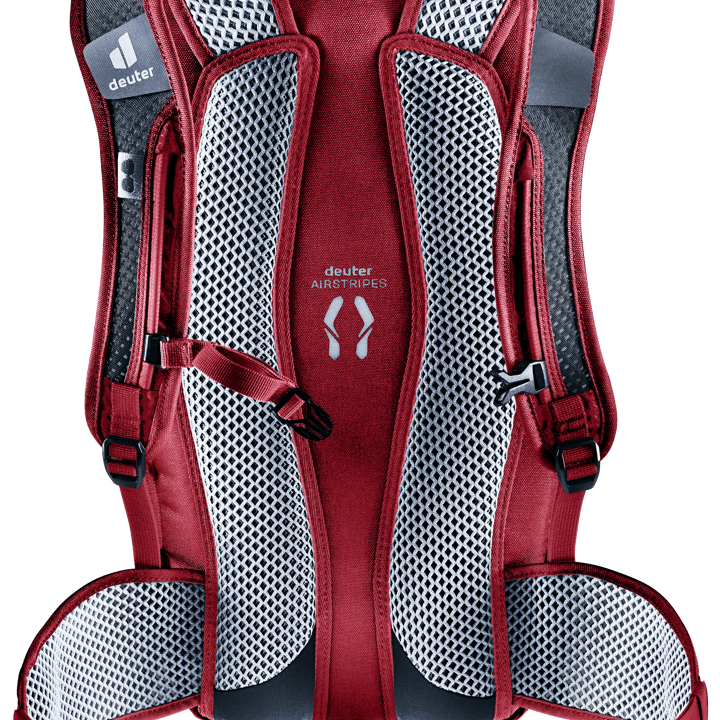 Esta mochila de ciclismo de tamaño reducido dispone de una buena relación peso-comodidad y se beneficia del sistema dorsal transpirable Airstripes deuter. Proporciona a los ciclistas de montaña atléticos un buen flujo de aire a través de la espalda y un ajuste perfecto para los senderos que requieren pericia técnica. Una correa pectoral y las aletas lumbares con malla dan a la mochila una estabilidad adicional. Con el tejido principal aprobado por bluesign®, hecho de materiales 100 % reciclados y componentes elaborados mediante prácticas de fabricación eficientes con los recursos y respetuosas con el medio ambiente, la mochila Race cumple con los más altos estándares medioambientales, es climáticamente neutra y no contiene PFAS.