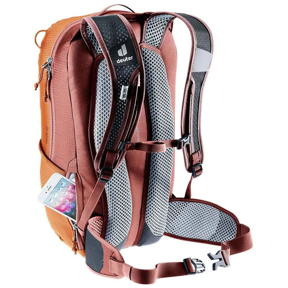 La mochila para bicicleta Deuter Race 16 es ideal para ciclistas de montaña con su sistema de espalda transpirable Airstripes. Confeccionada en poliamida reciclada, destaca por su peso ligero y com