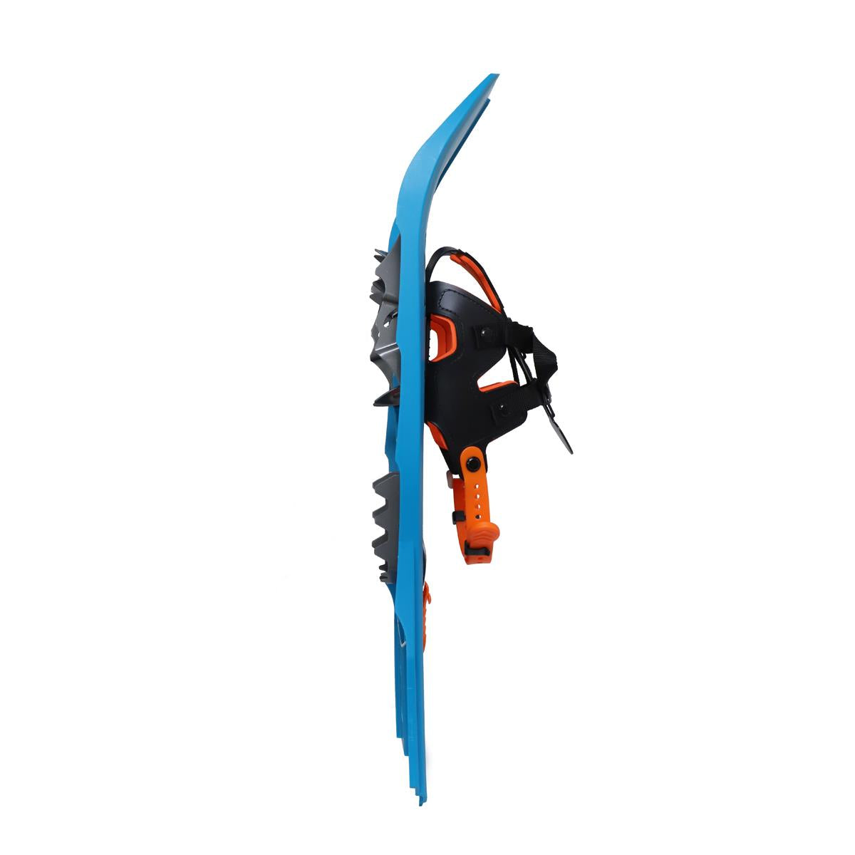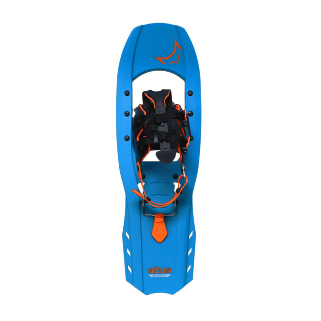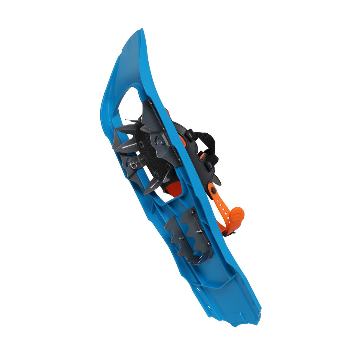 Raqueta de nieve para travesía invernal provistas confijación con una lengua que sale de la puntera y sube por el empeine de la bota, que a su vez esta sujetada en dos puntos por las cintas horizontales de cierre, lo que hace que no se desplace. Gracias a esto, se mejora la fijación de la bota evitando el desplazamiento hacia delante.