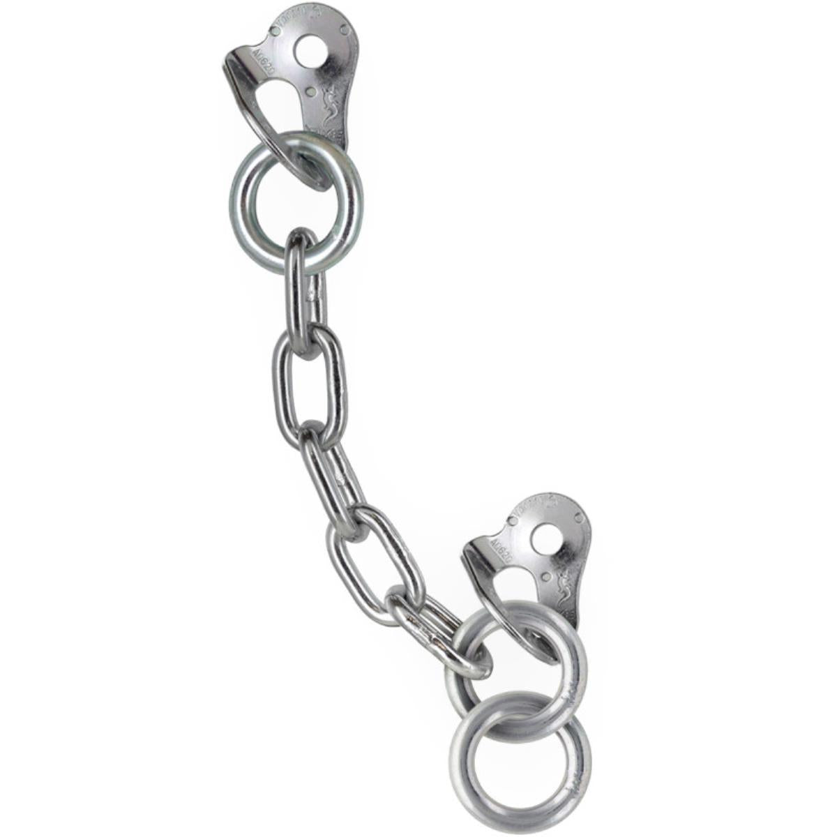 Reunión tipo D en acero inoxidable 316L, para entornos de exterior cincado ecotri, para entornos de interiorDos puntos de fijación compuestos por plaqueta Fixe 1 en extremo superior y Fixe 2 en extremo inferior, ambos para tornillos de M10 M12Punto de anclaje con anilla Diseñada y fabricada en Barcelona-Pirineus CARACTERÍSTICAS DE LOS COMPONENTES Geometría plaqueta Fixe 1: Borde interno redondeado para un menor desgaste de los mosquetones Direcciona el mosquetón para un óptimo trabajo en techos Conical Washer Más control en el par de apriete Tres pins antirotación Superficie optimizada para lograr un contacto plenoCaracterísticas plaqueta Fixe 1: Para tornillos M10 M12 Peso: 57g (M10) 56 (M12) Resistencia límite: 25kN Material: acero cincado ecotri inoxidable316LCaracterísticas de la plaqueta Fixe 2: Punto de contacto con la anilla en forma oval Aumenta la vida útil del conjunto Conical Washer Mejora el par de apriete Tres pins antirotación Para tornillos M10 M12 Resistencia límite: 25Kn Material: disponible en acero cincado ecotri inoxidable 316LCaracterísticas de la anilla: Anilla siempre presente entre componentes para una mejor maniobrabilidad Soldadura en TIG Mejor resistencia a la corrosión Diámetro interior: 33mm Resistencia límite: 25kN Material: acero cincado ecotri inoxidable 316L Características de la cadena de acero inoxidable 316L: Soldadura en TIG Mejor resistencia a la corrosión Reducción del número de eslabones a tres Menor número de puntos críticos Diámetro de varilla de eslabón: 7mm Longitud útil: 185mm Resistencia límite: 25kN Material: acero inoxidable 316L Características de la cadena de acero cincado ecotri: Diámetro de varilla de eslabón: 7mm Longitud útil: 185mm Resistencia límite: 25kN Material: acero cincado ecotri