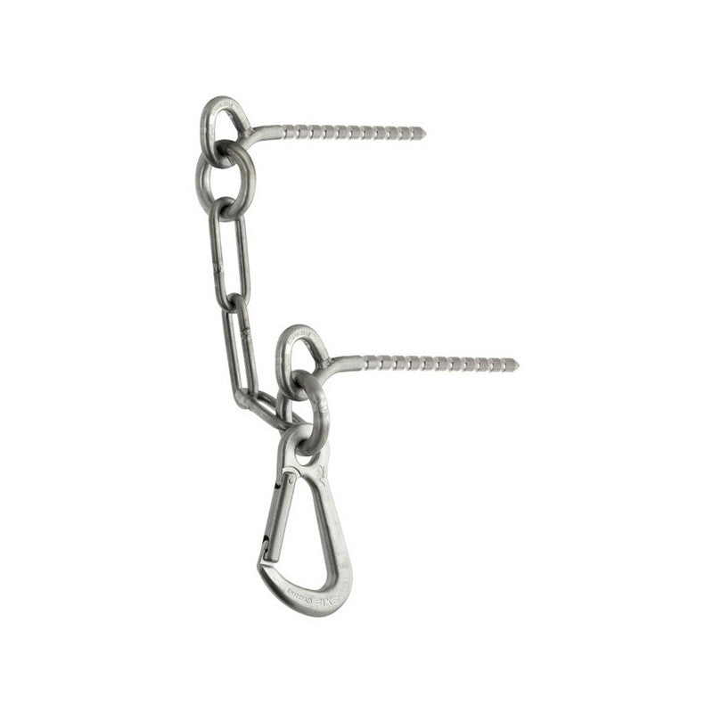 Esta reunión destaca por su punto de fijación con tensor largo en ambos extremos, una anilla permanente que facilita las maniobras, una cadena de acero inoxidable reducida a tres eslabones para minimizar los puntos críticos y un mosquetón Draco con cierre keylock y una amplia zona de rozamiento. Todo ello, diseñado y fabricado en Barcelona-Pirineus.