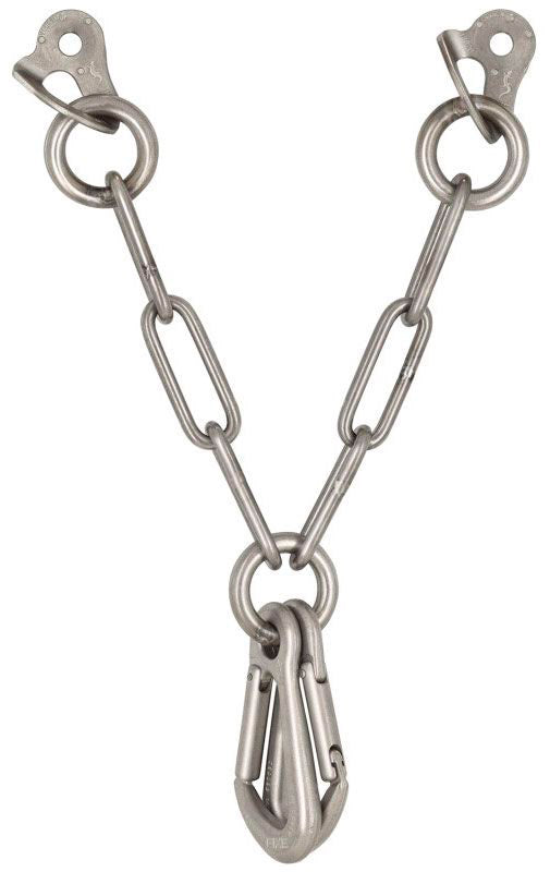 Reunión Tipo V en acero inoxidable 316L con dos mosquetones para entornos de exterior