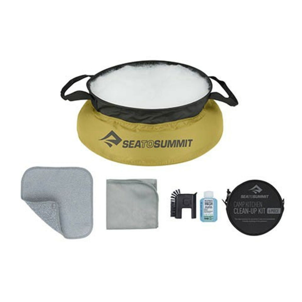 El set está compuesto por un fregador que tiene una capacidad de 10 litros y es perfecto para lavar grupos pequeños de vasos o platos. Cuenta con un paño de doble cara y un jabón Wilderness Wash. Con este jabón damos la opción de usarlo también para el lavado de ropa e incluso para un uso personal. Finalmente, cuenta con una toalla DryLite que se caracteriza por su magnífico poder de absorción y un secado realmente rápido.