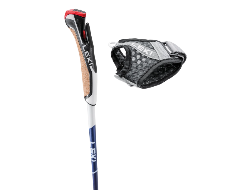 Experience the pinnacle of walking innovation with the Nordic Walking Pole from Leki's Smart Pacer Lite Series. Crafted with precision from lightweight Carbon Fibre, this pole ensures effortless and efficient movement for adult enthusiasts of Nordic walking. The ergonomic Nordic Shark handle, featuring 2K Cork, delivers superior grip and comfort, even on extended walks. The Shark Frame Strap Mesh harness offers optimal fit and support, making it suitable for both men and women. With its elegant midnight-blue and dark metallic hues, this pole not only enhances your performance but also adds a touch of style to your outdoor adventures. Choose Leki for unmatched quality and design.
