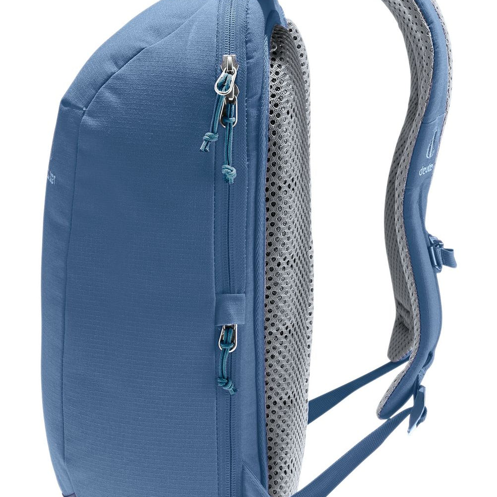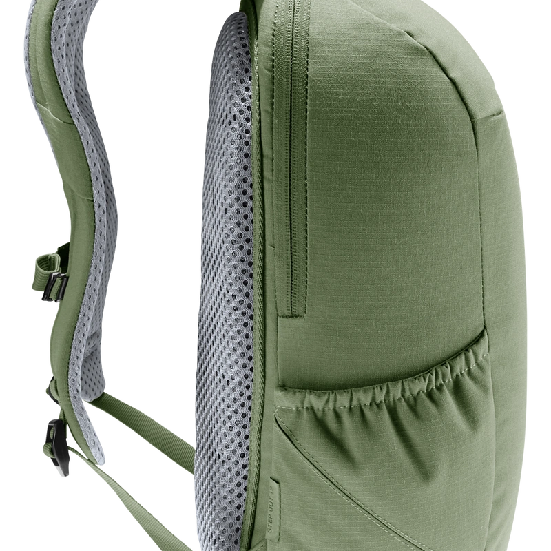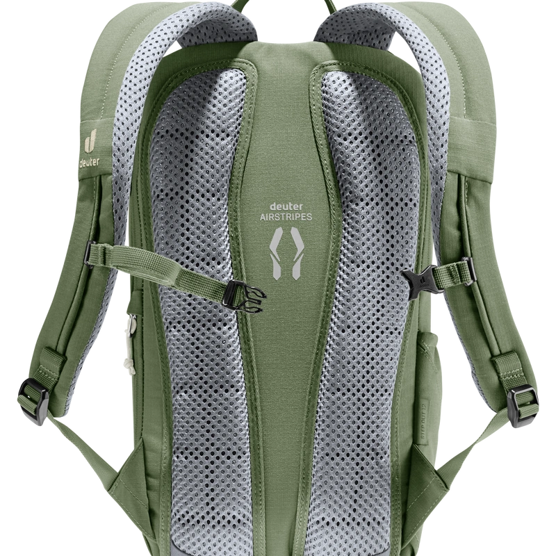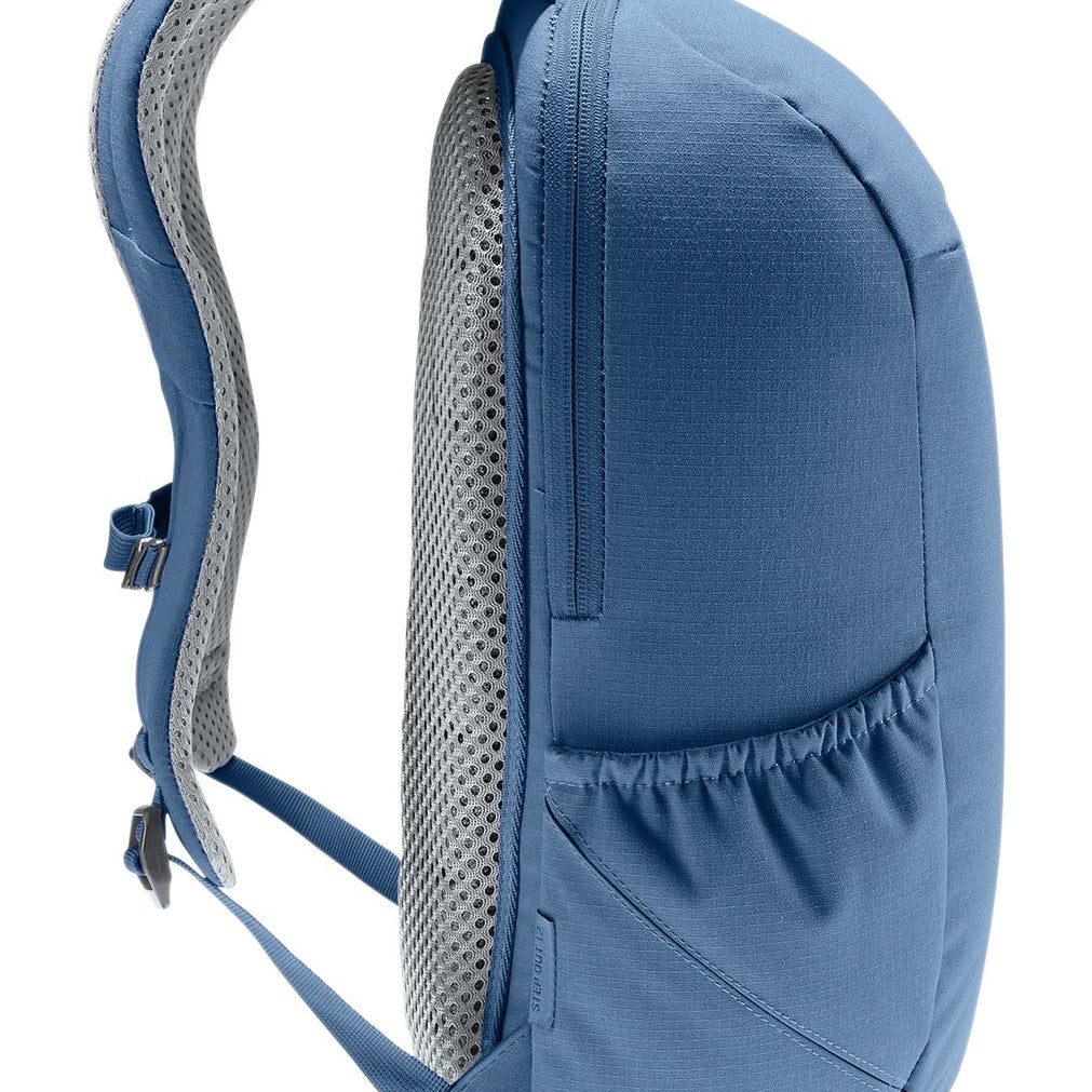 La mochila Stepout 12 destaca por su comodidad y ventilación gracias a las correas para los hombros perforadas y ergonómicas, junto con el sistema de espalda Airstripes de Deuter.